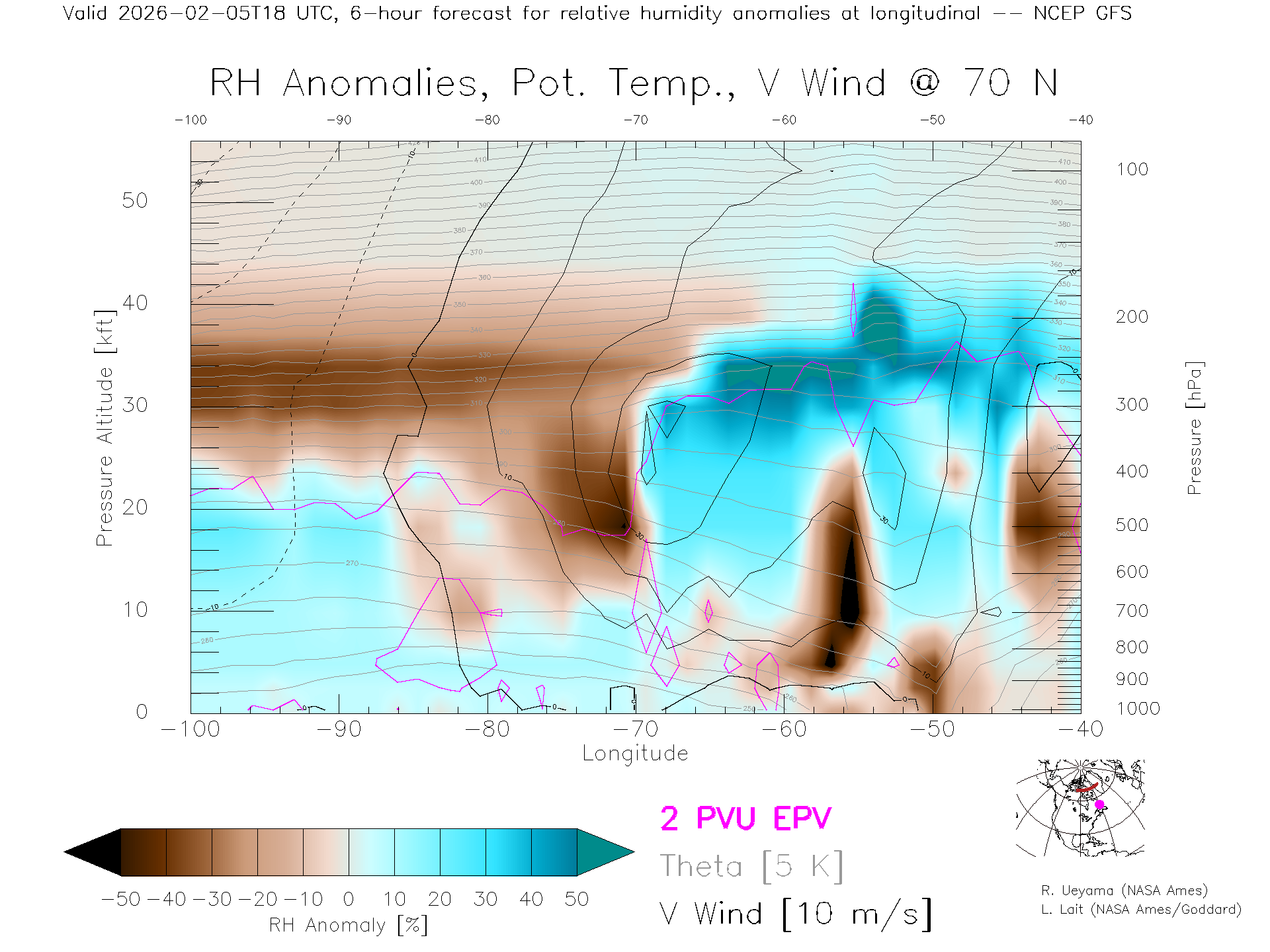 NCEP GFS Forecast Rel. Hum. X-Section (70 N)