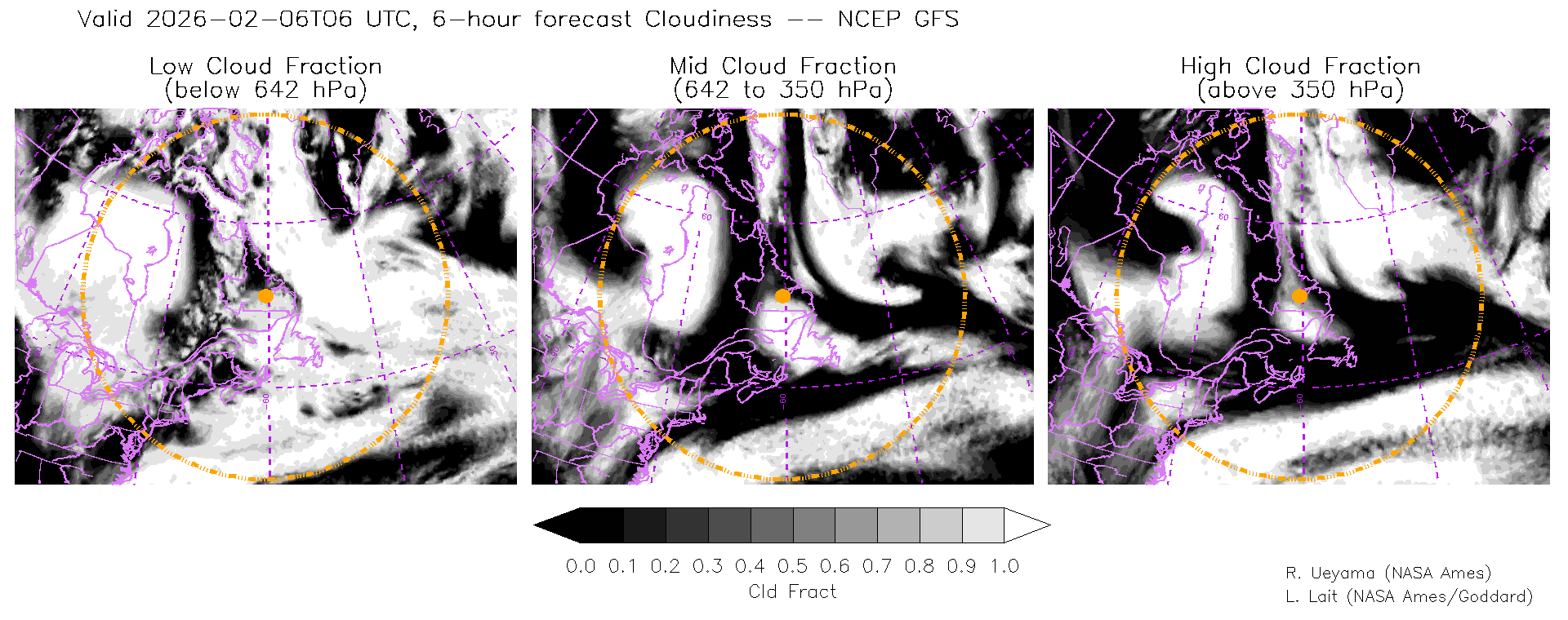 NCEP GFS Forecast Cloud Fraction (High, Mid, Low)