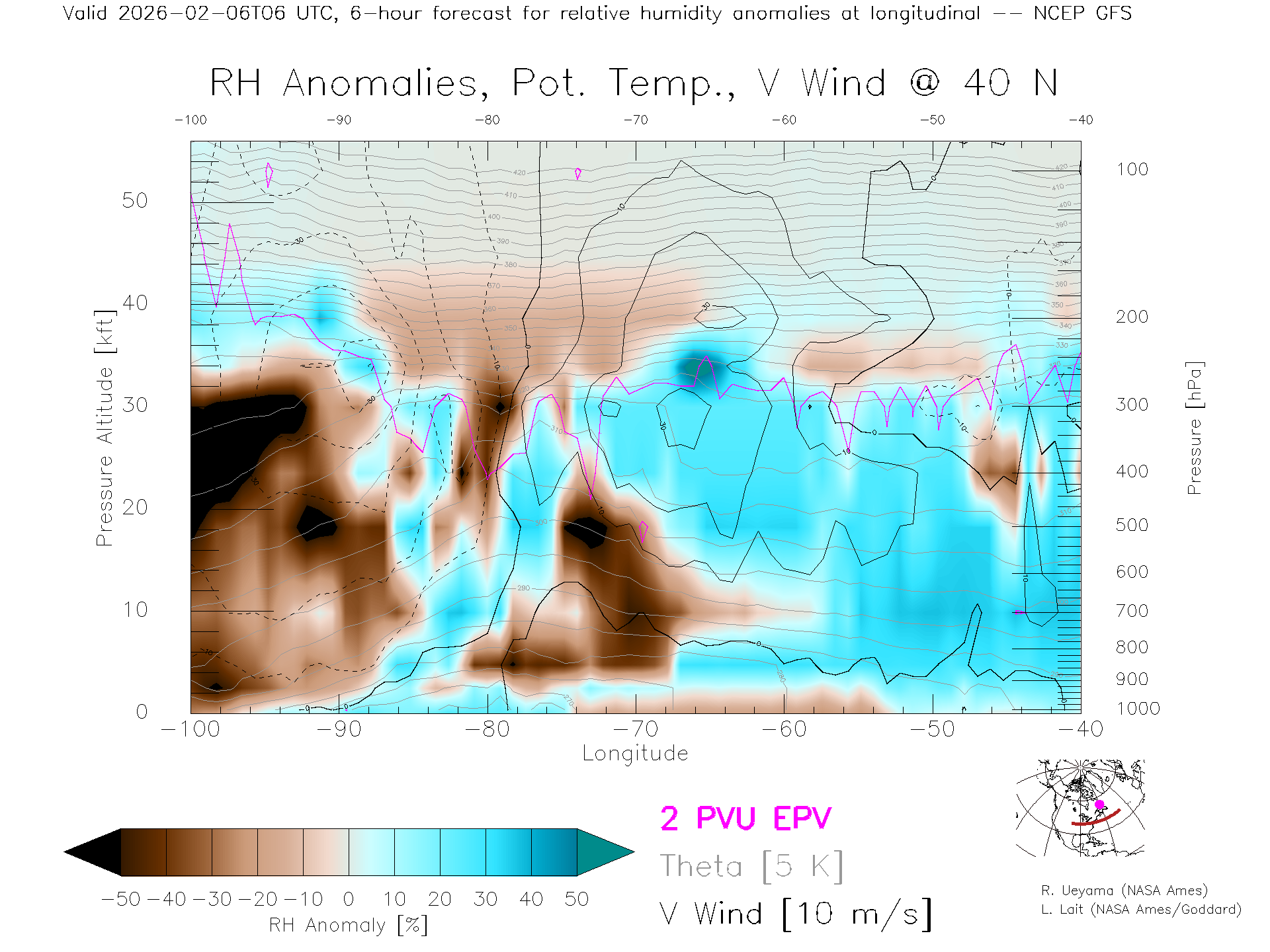 NCEP GFS Forecast Rel. Hum. X-Section (40 N)