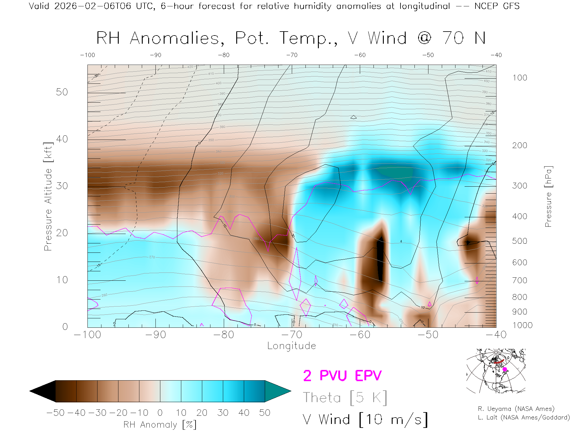 NCEP GFS Forecast Rel. Hum. X-Section (70 N)