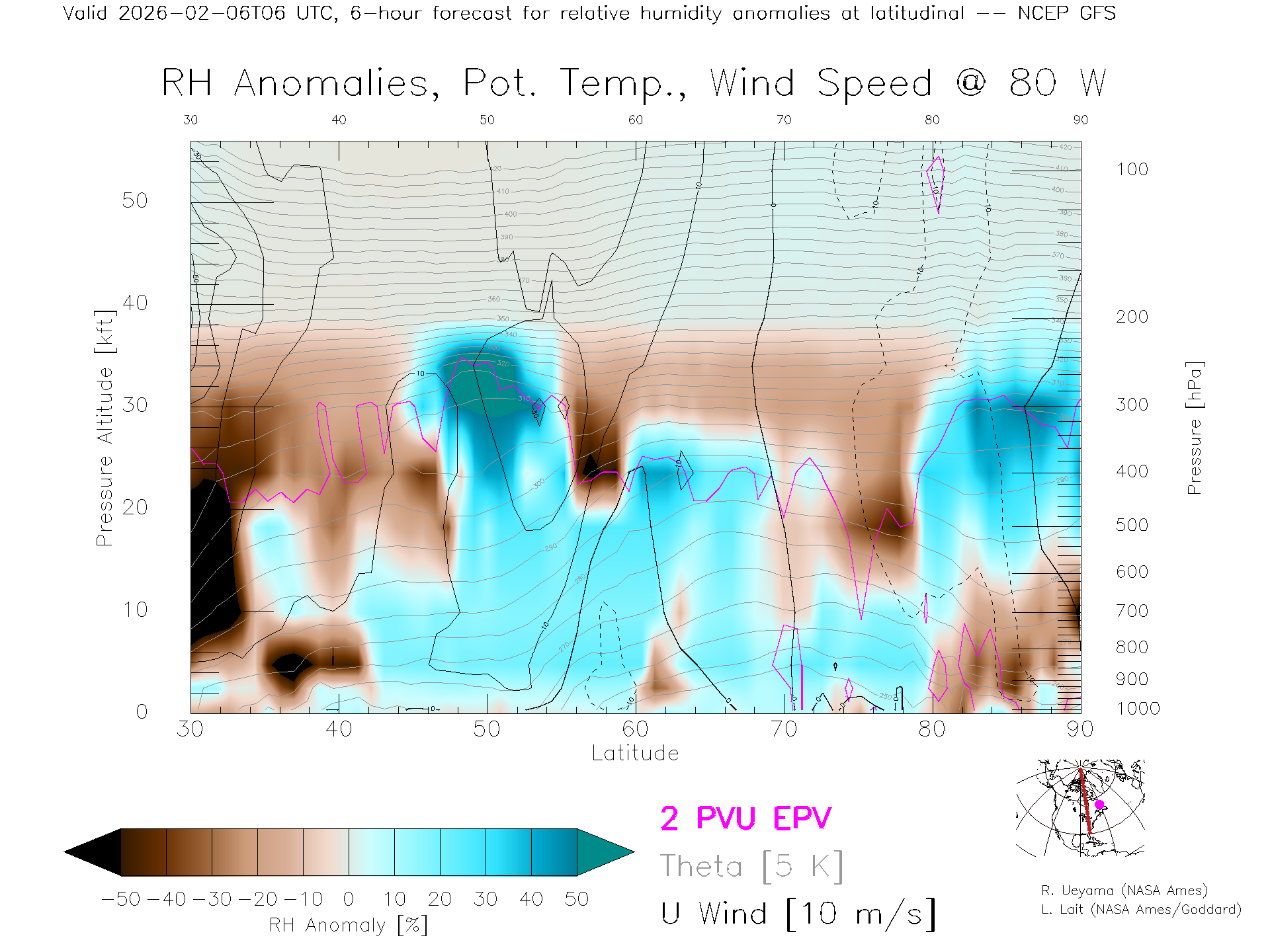 NCEP GFS Forecast Rel. Hum. X-Section (80 W)