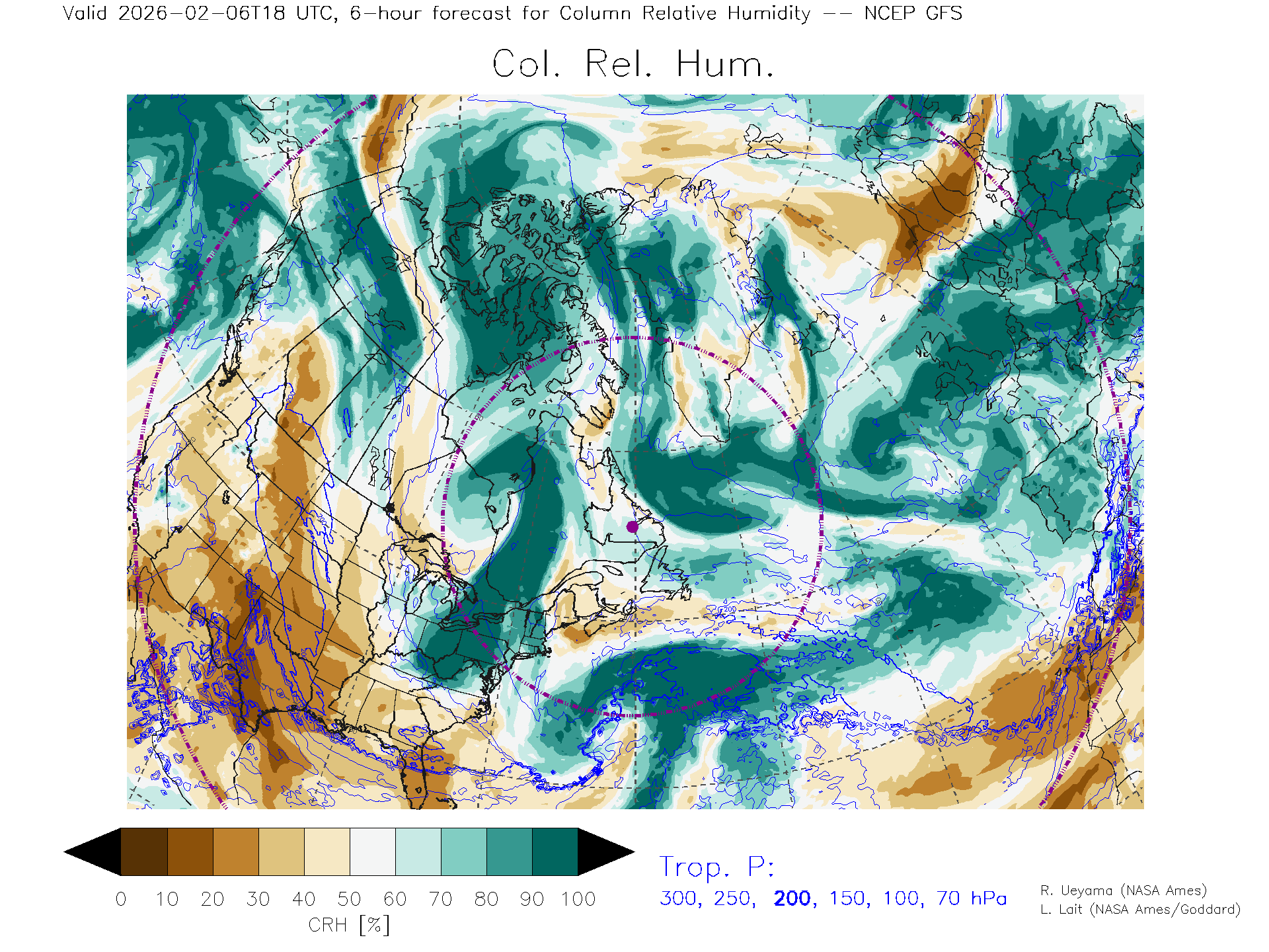 NCEP GFS Forecast Column Rel. Humidity