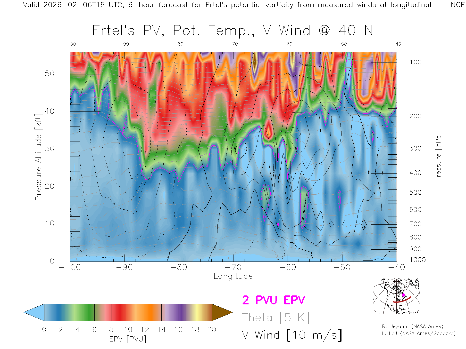NCEP GFS Forecast PV X-Section (40 N)