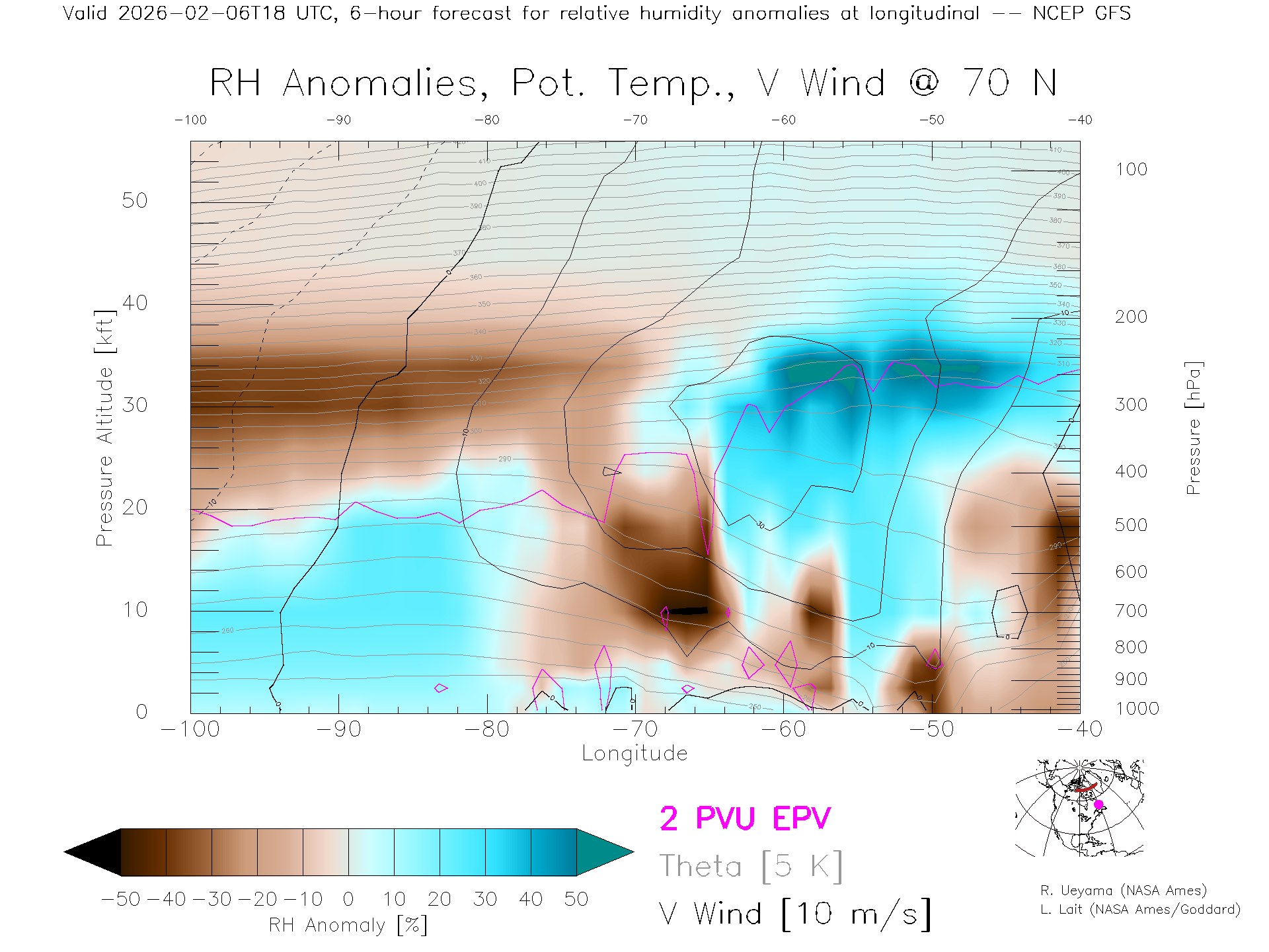NCEP GFS Forecast Rel. Hum. X-Section (70 N)