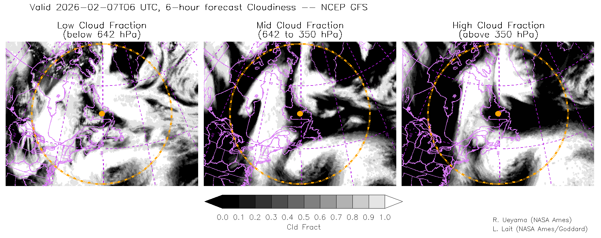 NCEP GFS Forecast Cloud Fraction (High, Mid, Low)