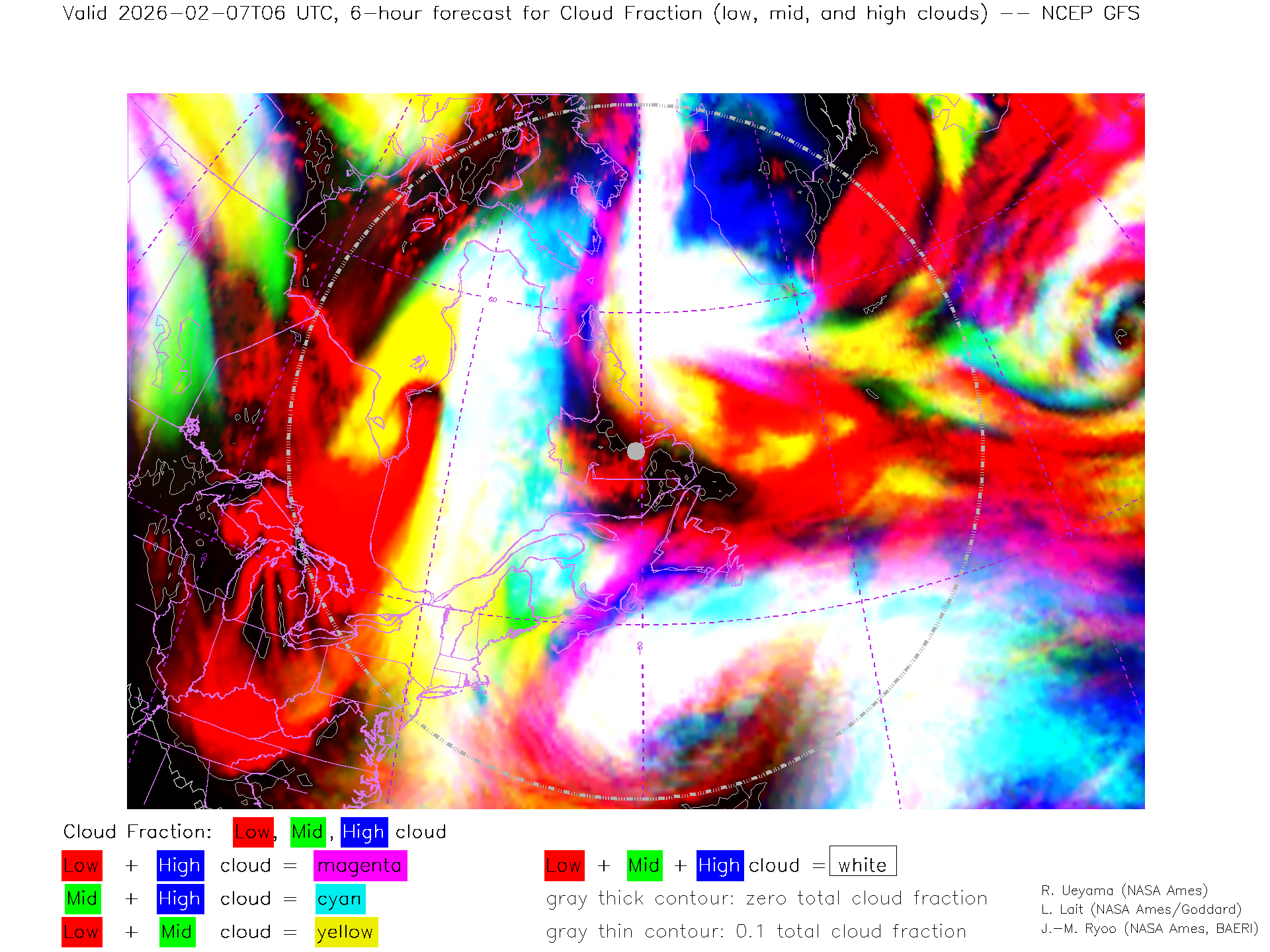 NCEP GFS Forecast Low-, Mid- and High-level Cloud Fraction