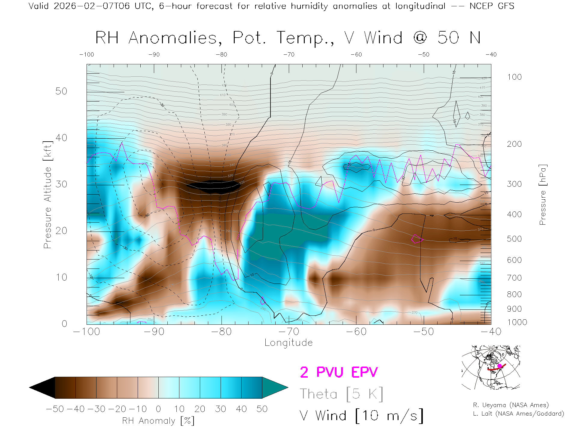 NCEP GFS Forecast Rel. Hum. X-Section (50 N)