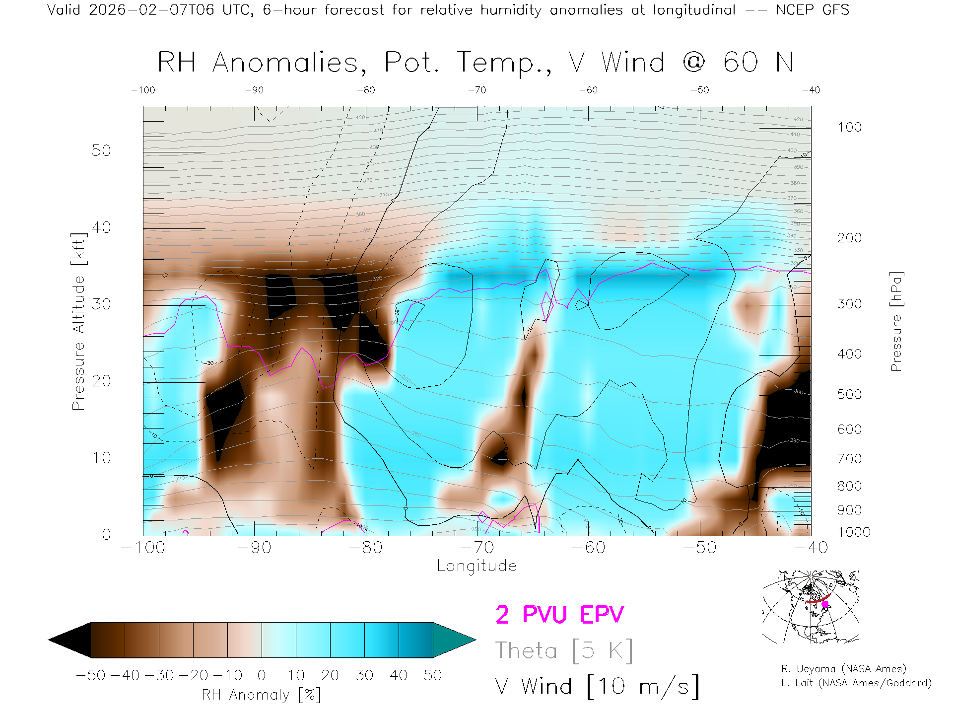 NCEP GFS Forecast Rel. Hum. X-Section (60 N)