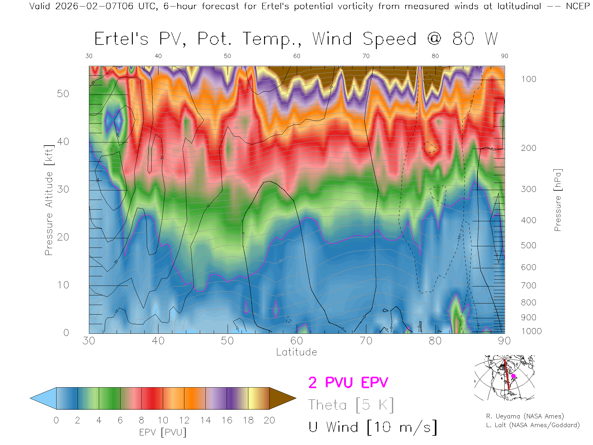 NCEP GFS Forecast PV X-Section (80 W)