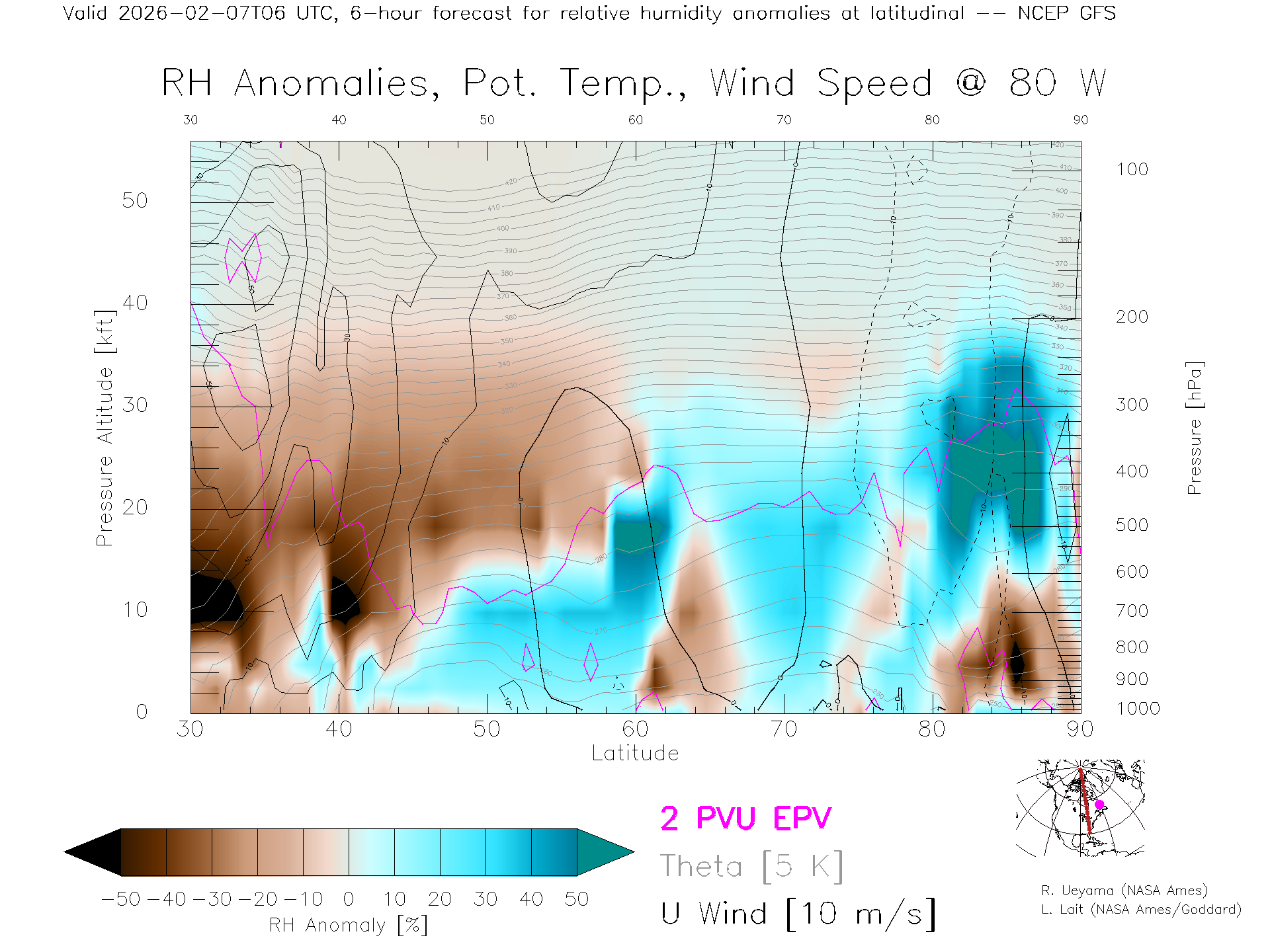 NCEP GFS Forecast Rel. Hum. X-Section (80 W)