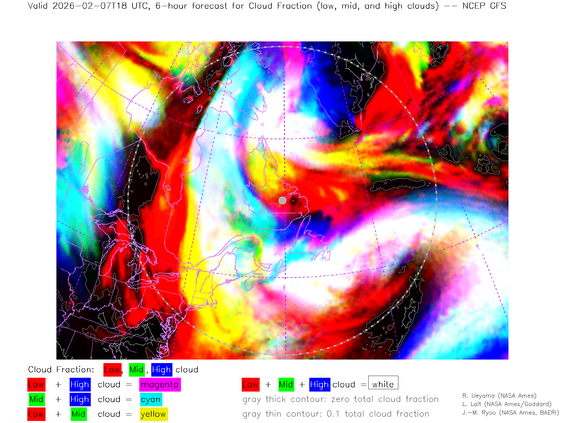 NCEP GFS Forecast Low-, Mid- and High-level Cloud Fraction