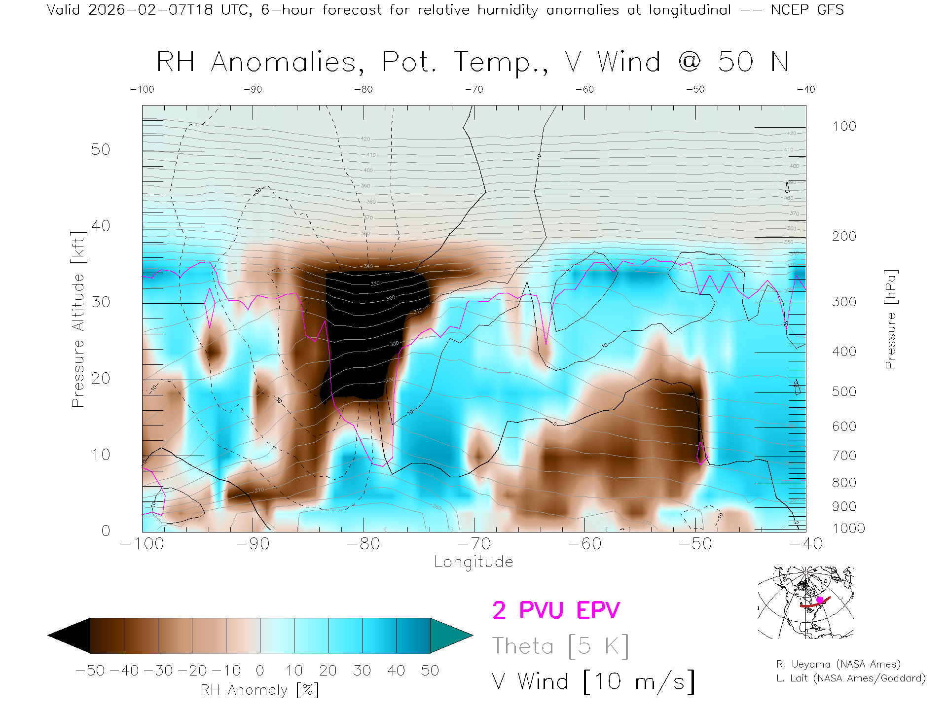 NCEP GFS Forecast Rel. Hum. X-Section (50 N)