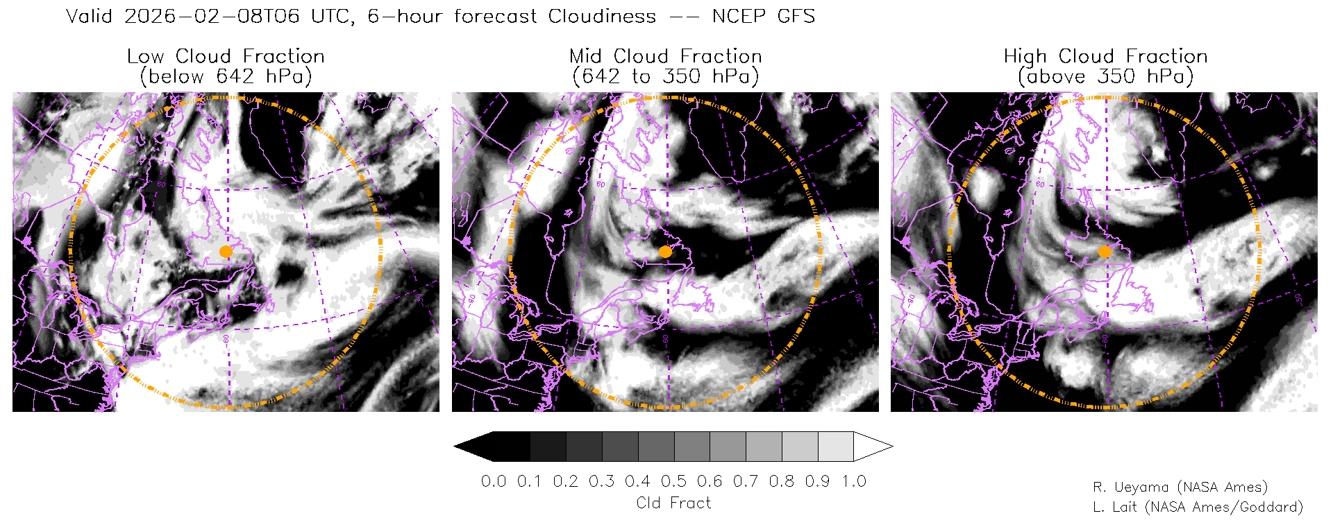 NCEP GFS Forecast Cloud Fraction (High, Mid, Low)