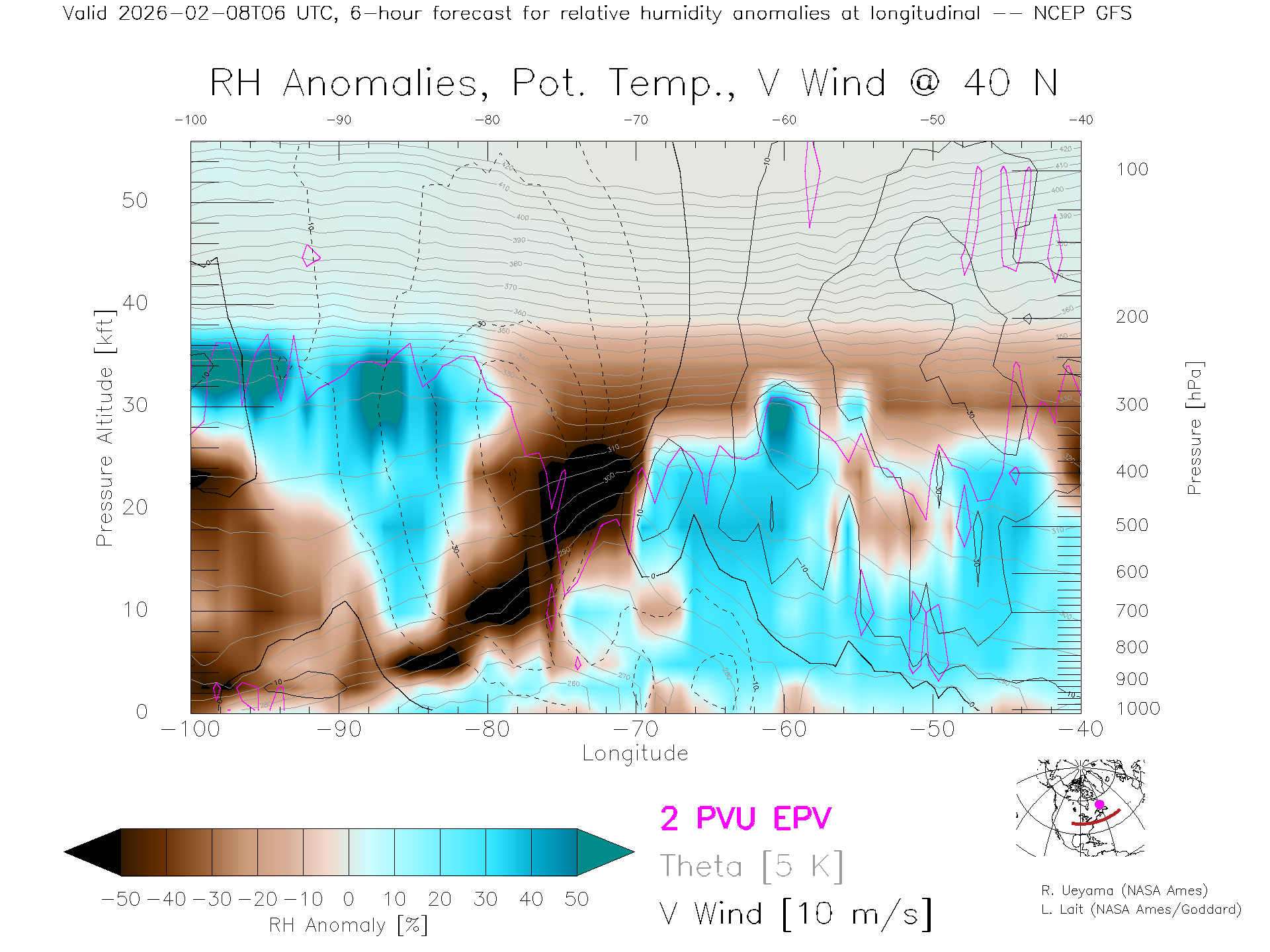 NCEP GFS Forecast Rel. Hum. X-Section (40 N)