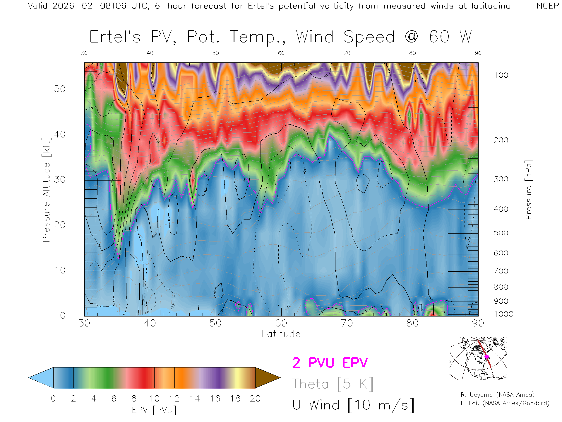NCEP GFS Forecast PV X-Section (60 W)