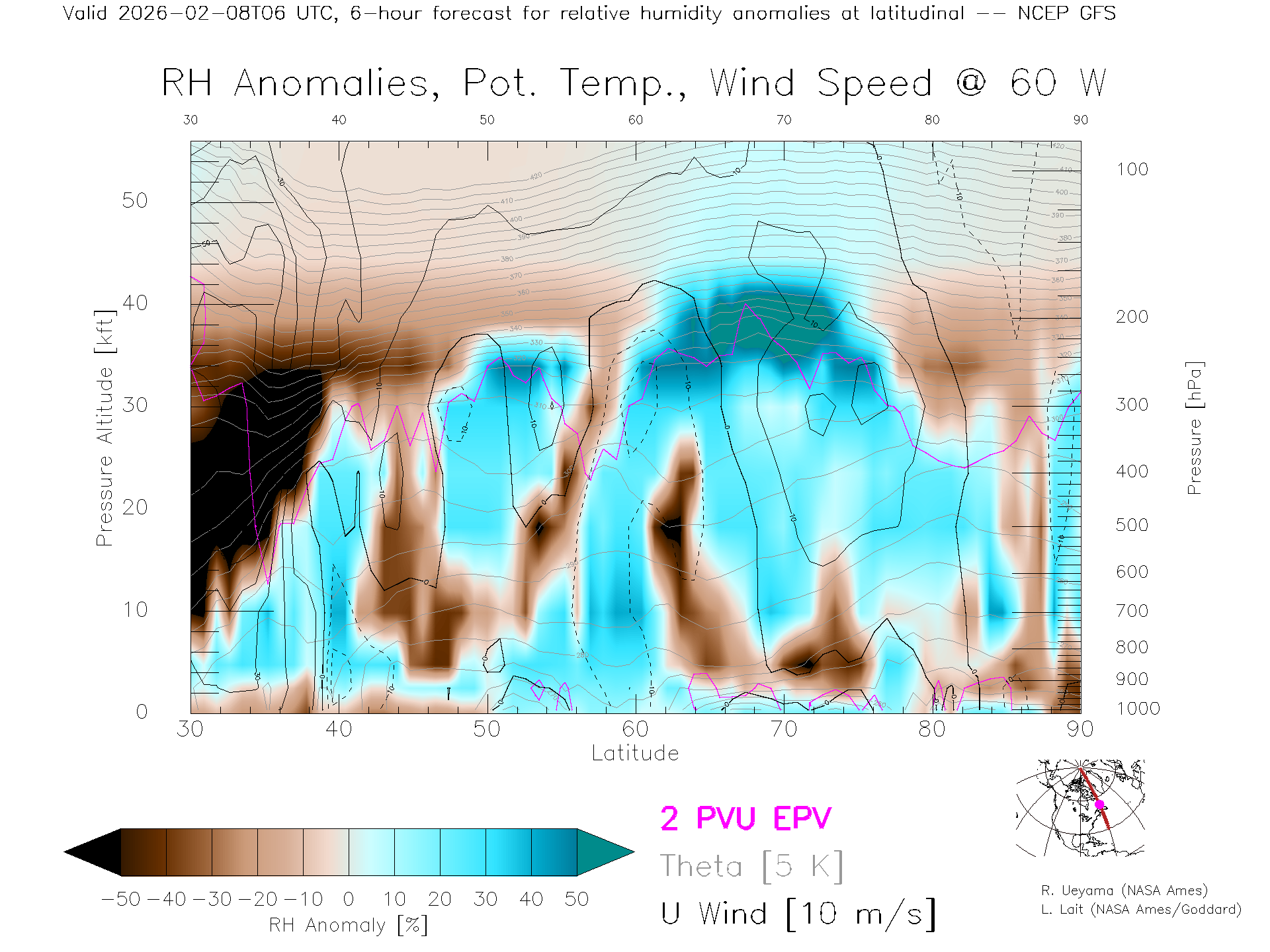 NCEP GFS Forecast Rel. Hum. X-Section (60 W)