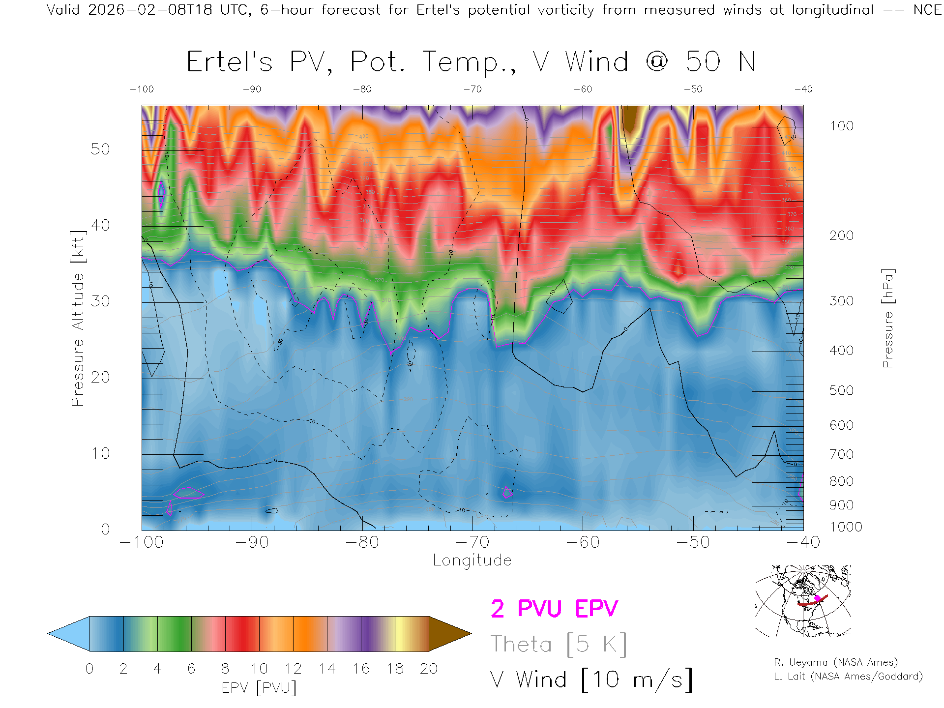 NCEP GFS Forecast PV X-Section (50 N)