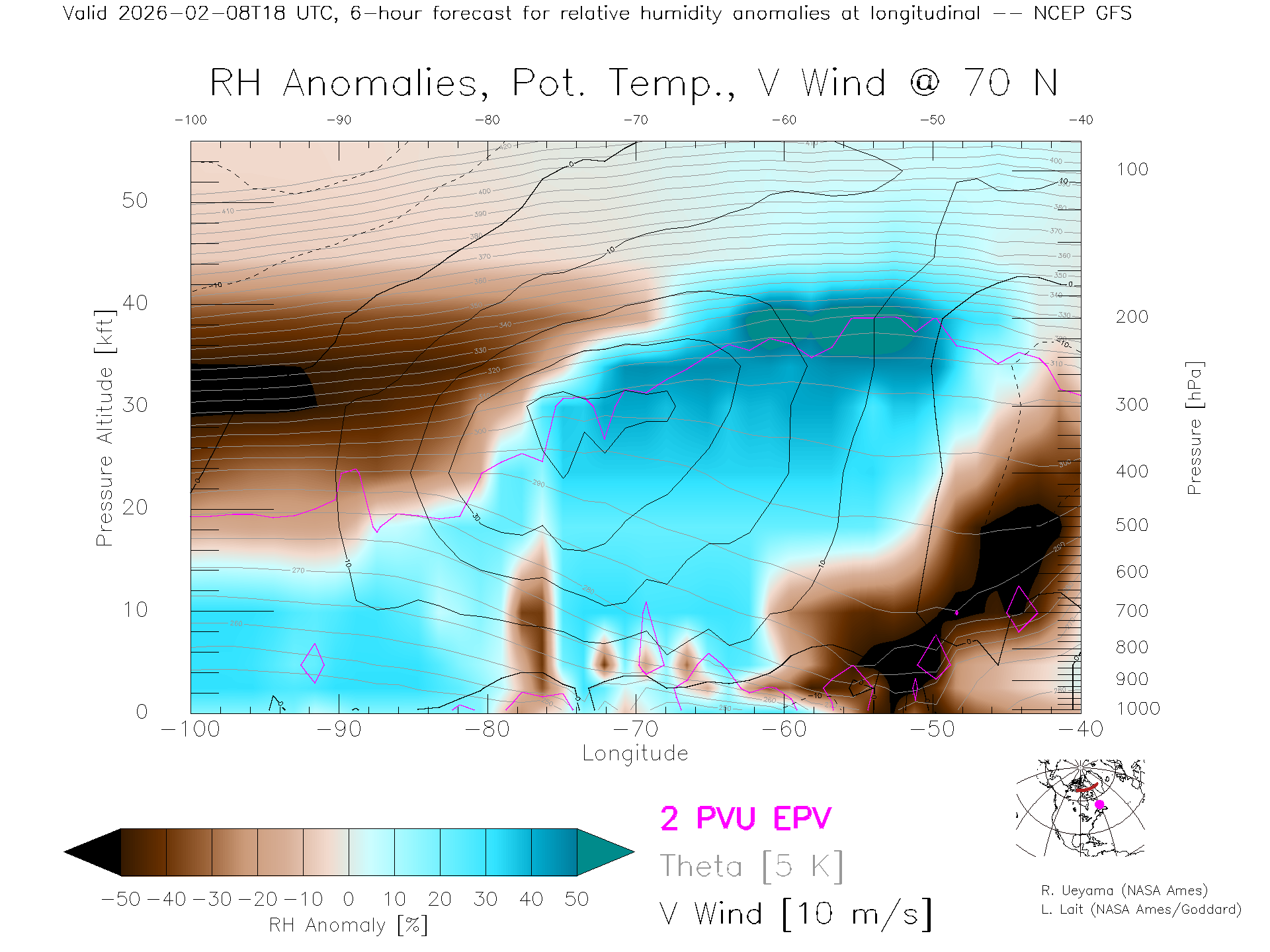 NCEP GFS Forecast Rel. Hum. X-Section (70 N)