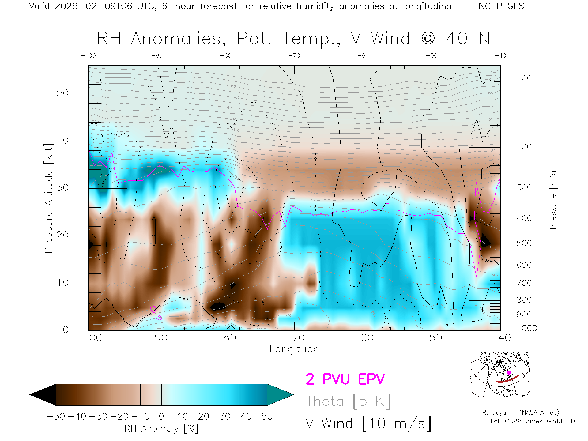NCEP GFS Forecast Rel. Hum. X-Section (40 N)