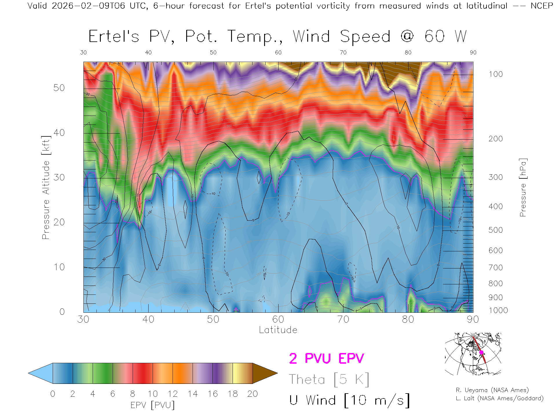 NCEP GFS Forecast PV X-Section (60 W)