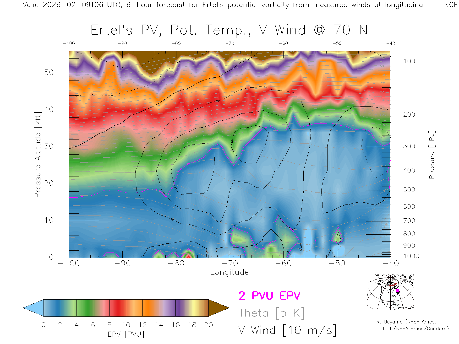 NCEP GFS Forecast PV X-Section (70 N)