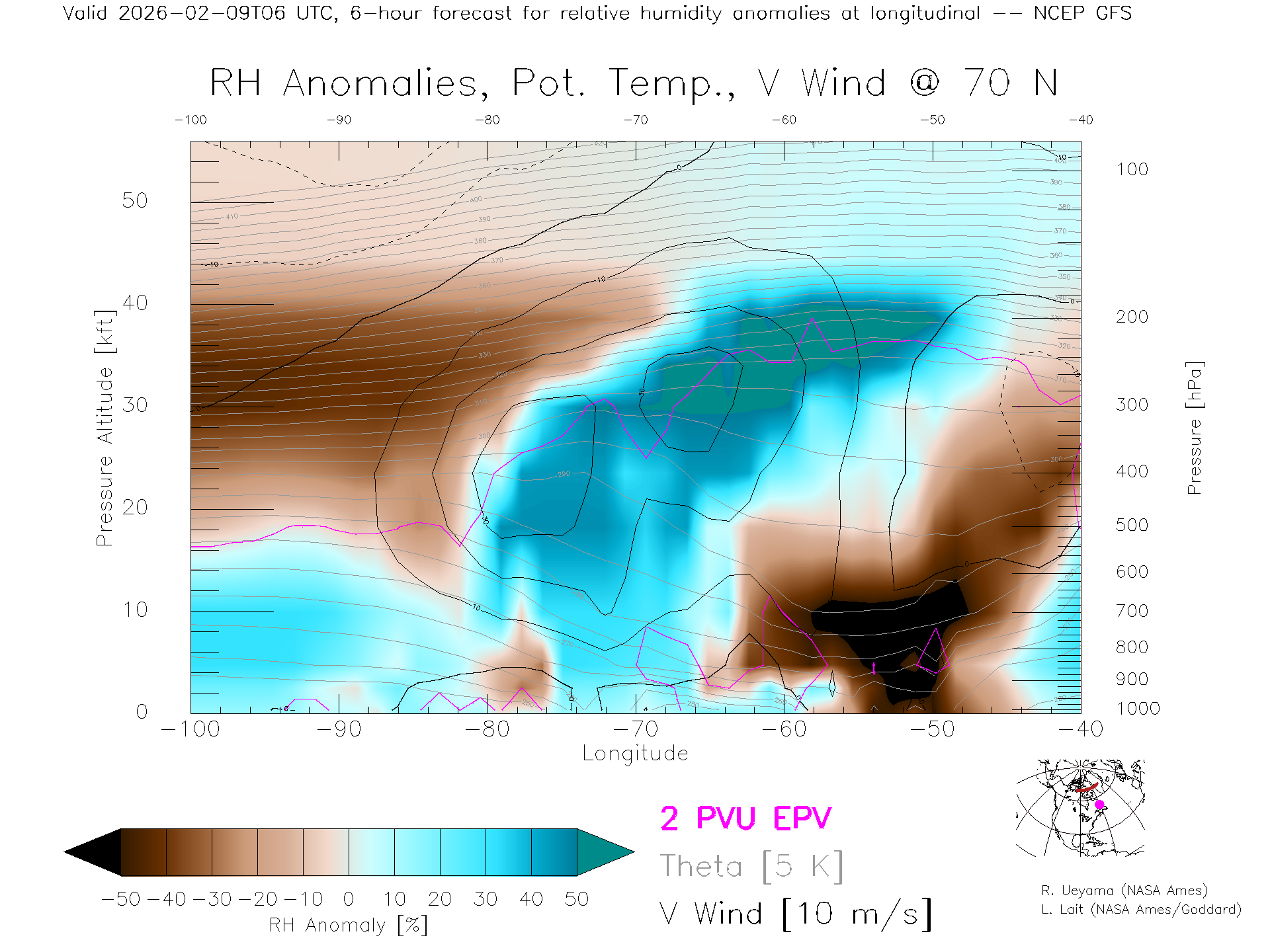 NCEP GFS Forecast Rel. Hum. X-Section (70 N)