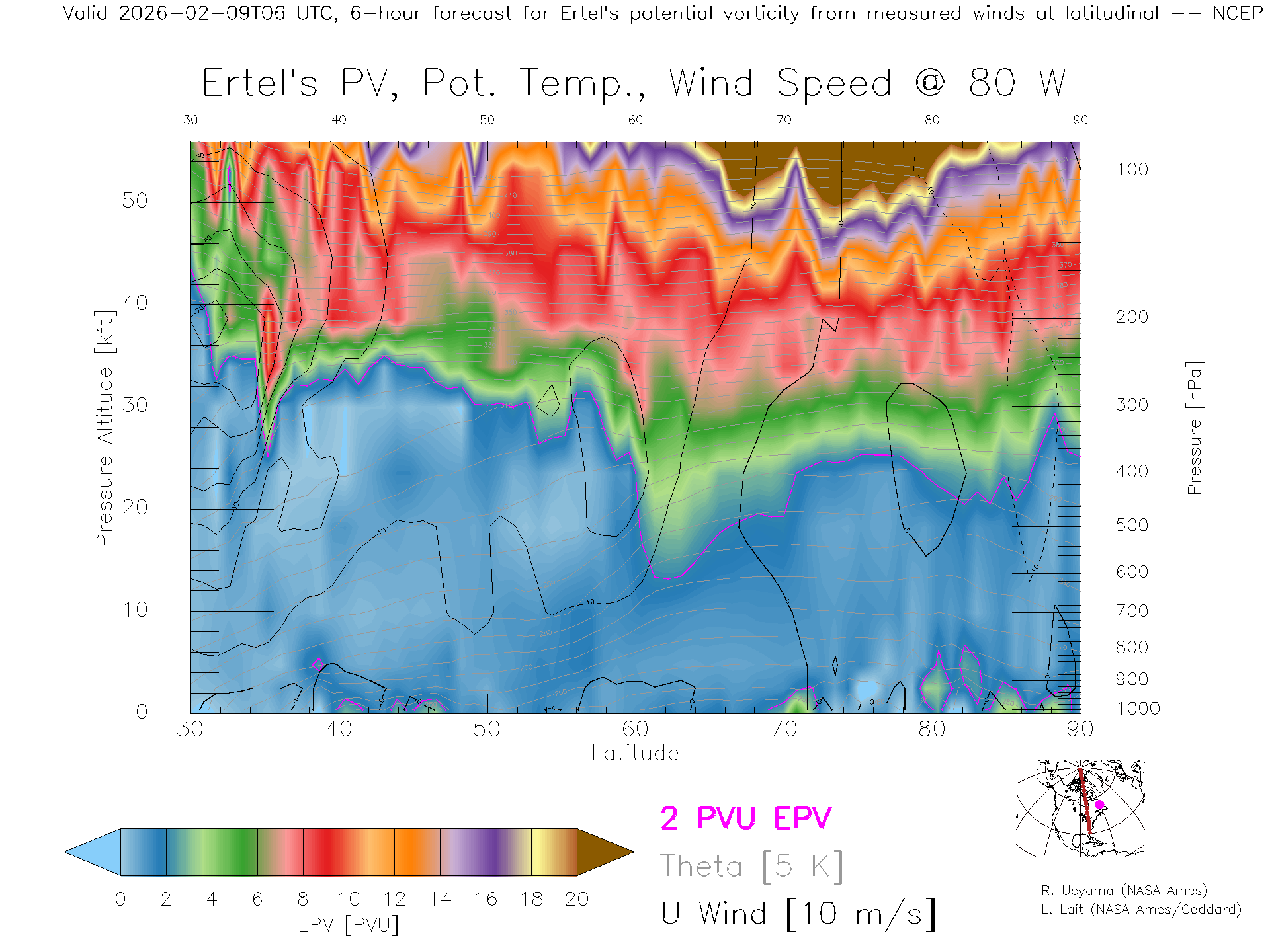 NCEP GFS Forecast PV X-Section (80 W)