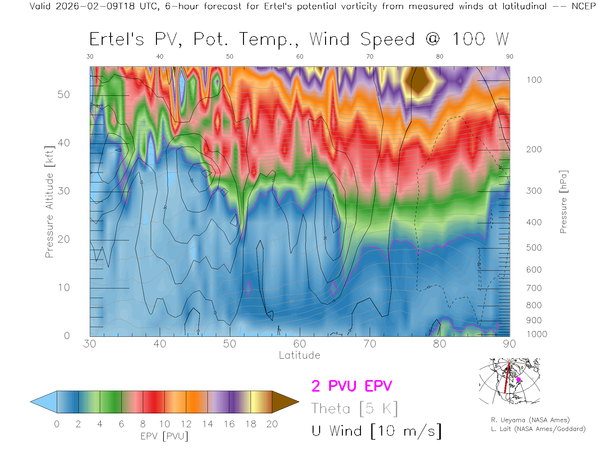 NCEP GFS Forecast PV X-Section (100 W)