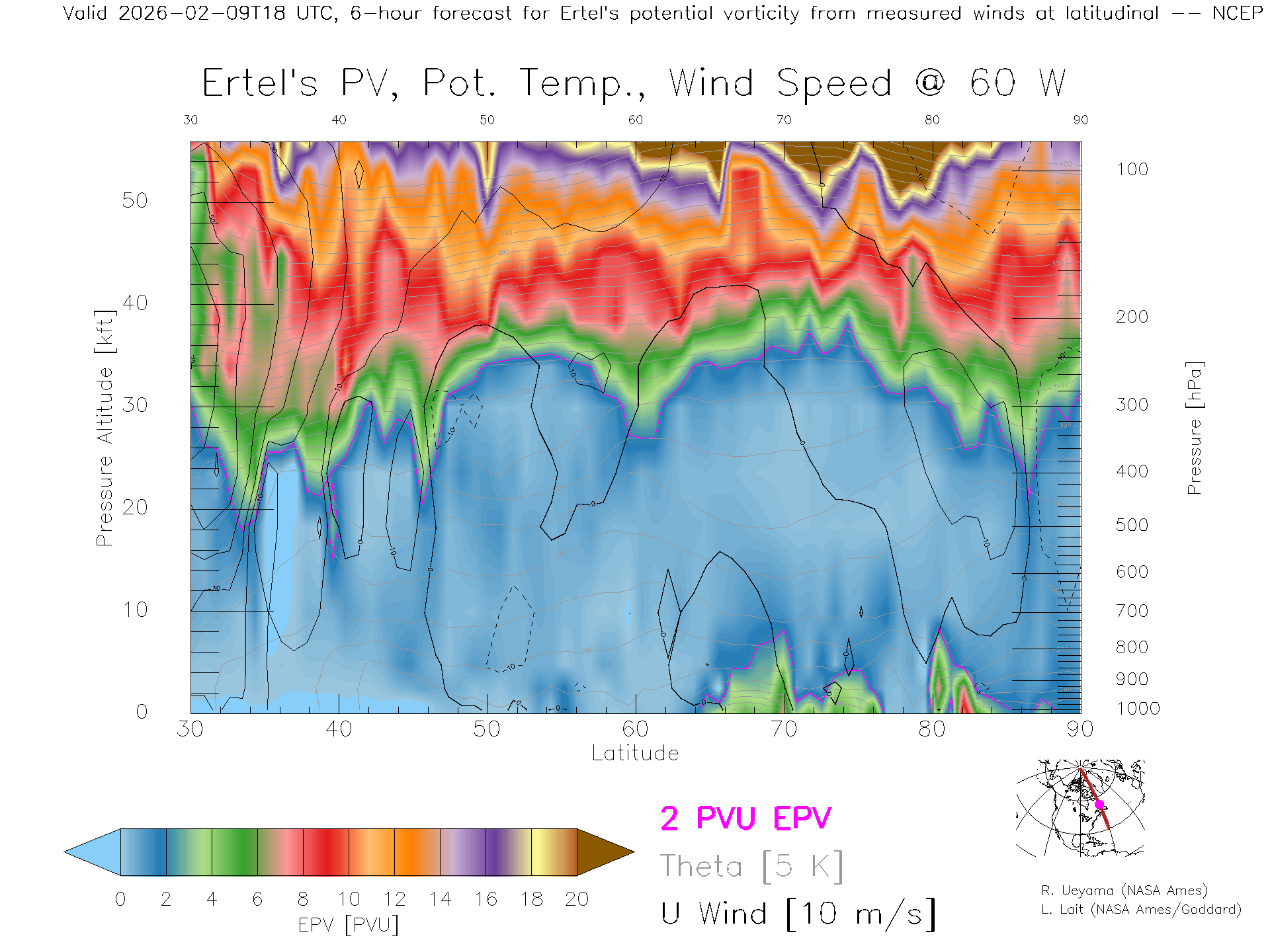 NCEP GFS Forecast PV X-Section (60 W)