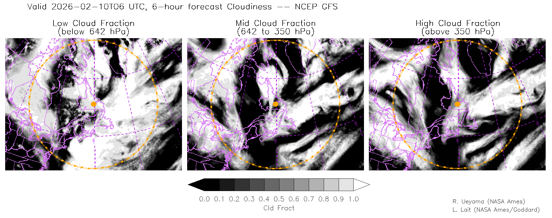 NCEP GFS Forecast Cloud Fraction (High, Mid, Low)