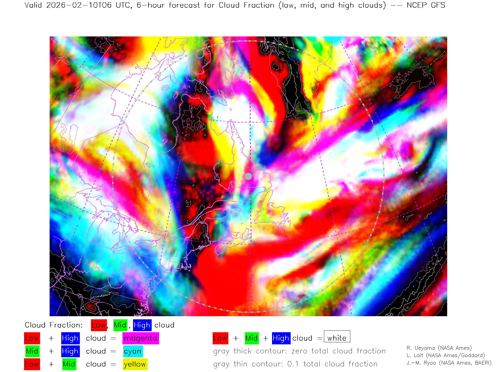 NCEP GFS Forecast Low-, Mid- and High-level Cloud Fraction
