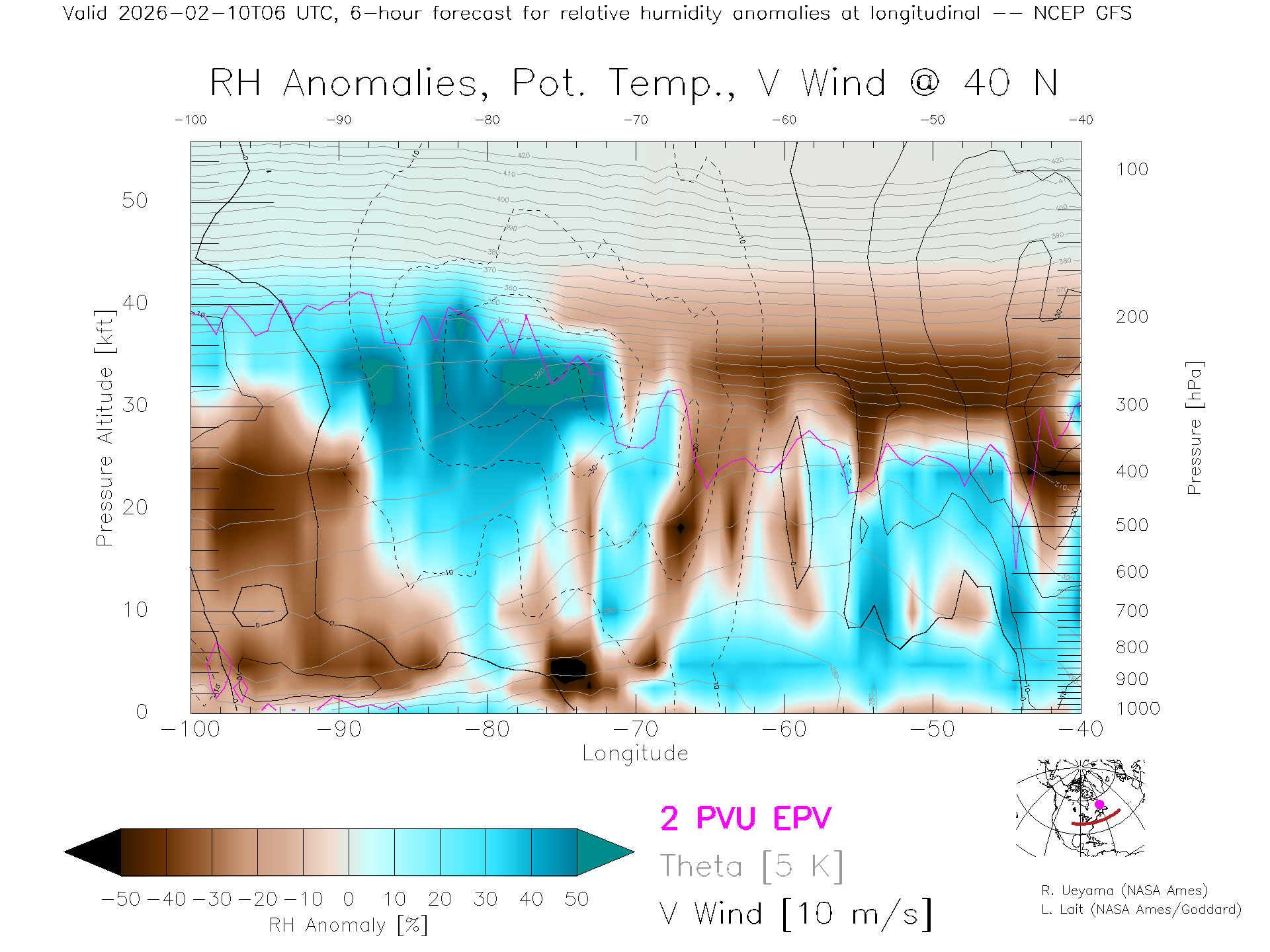 NCEP GFS Forecast Rel. Hum. X-Section (40 N)