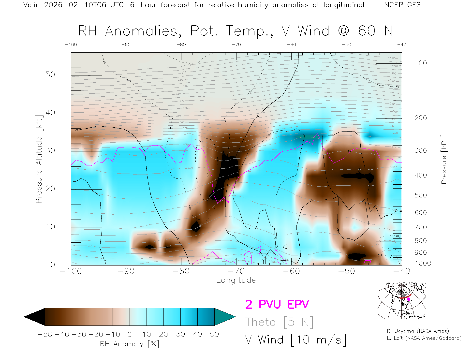 NCEP GFS Forecast Rel. Hum. X-Section (60 N)