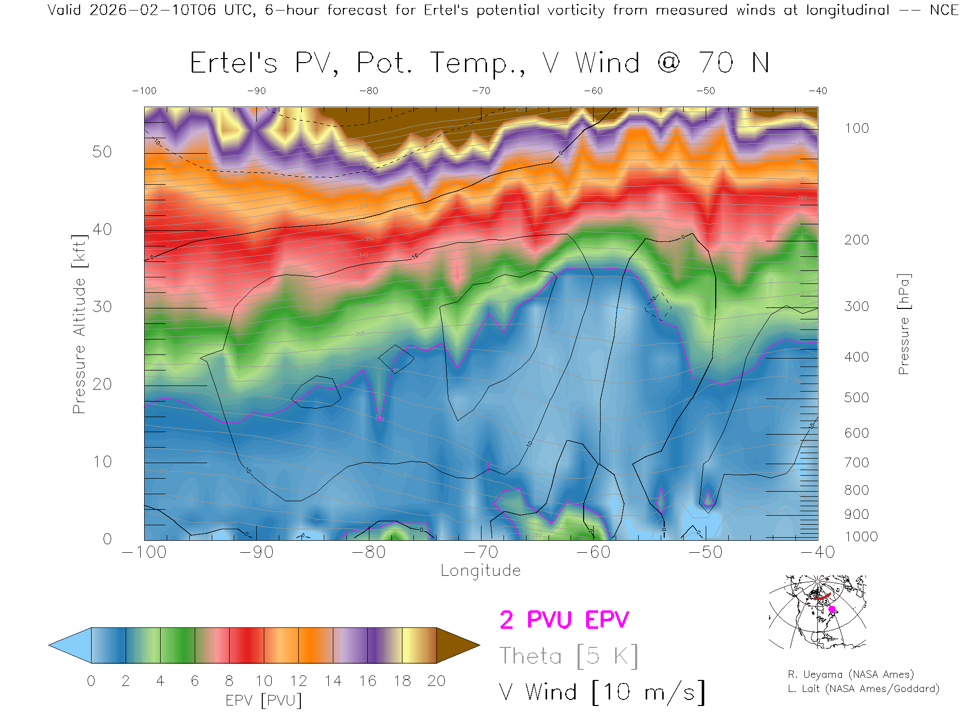 NCEP GFS Forecast PV X-Section (70 N)