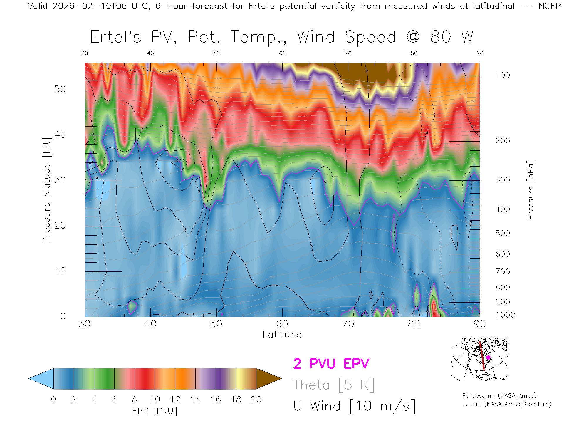 NCEP GFS Forecast PV X-Section (80 W)
