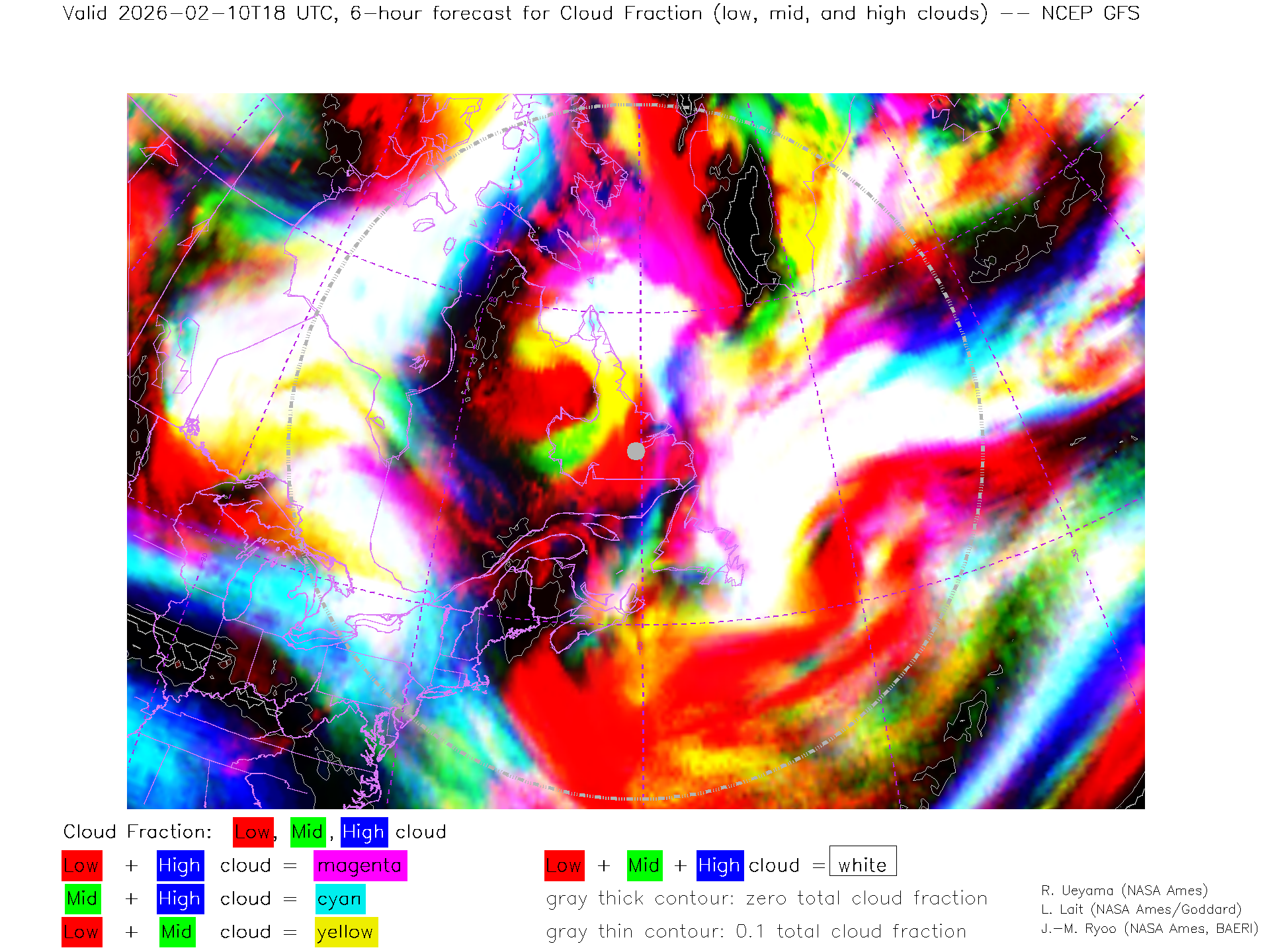 NCEP GFS Forecast Low-, Mid- and High-level Cloud Fraction