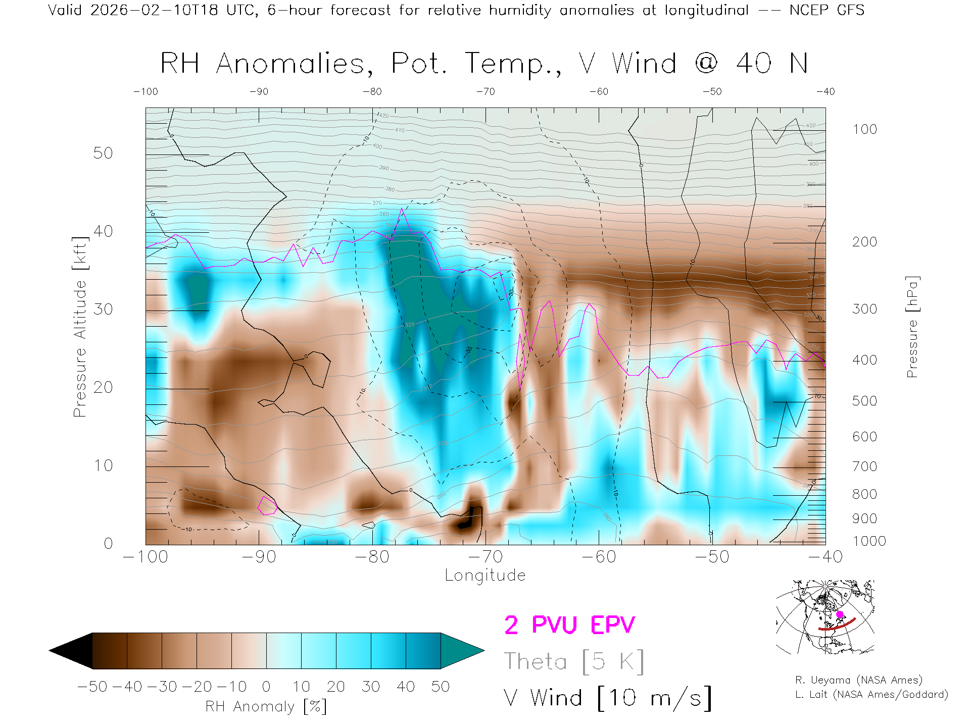 NCEP GFS Forecast Rel. Hum. X-Section (40 N)