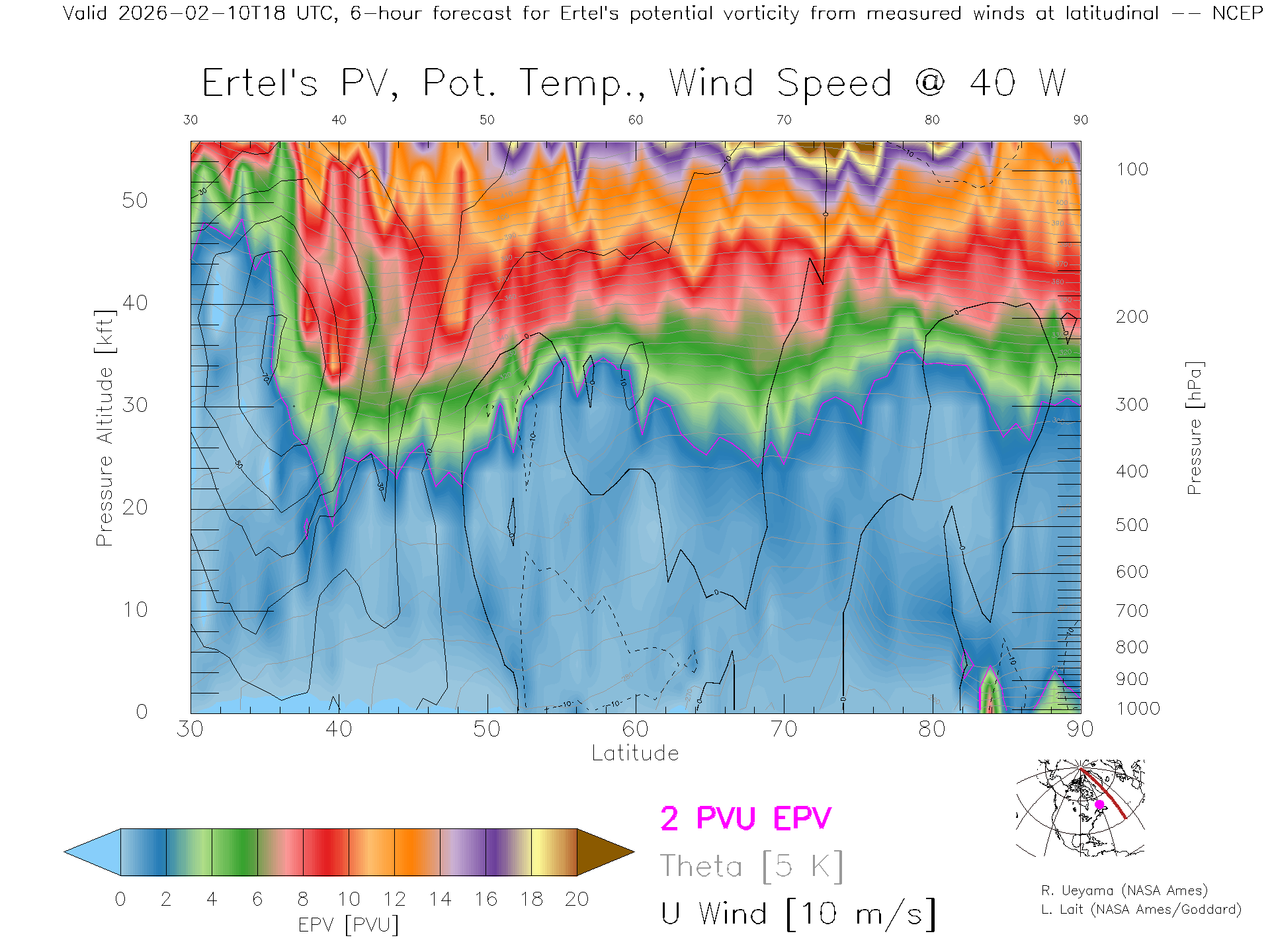 NCEP GFS Forecast PV X-Section (40 W)