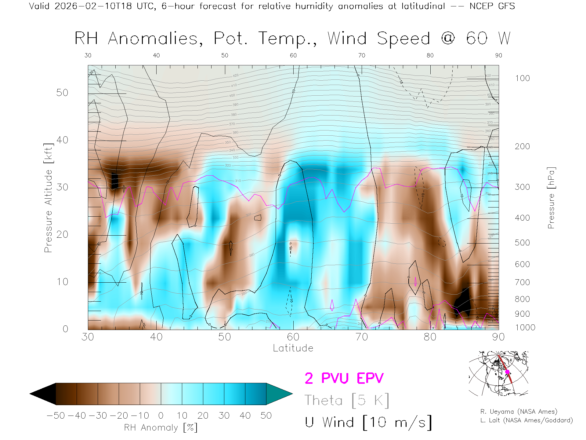 NCEP GFS Forecast Rel. Hum. X-Section (60 W)