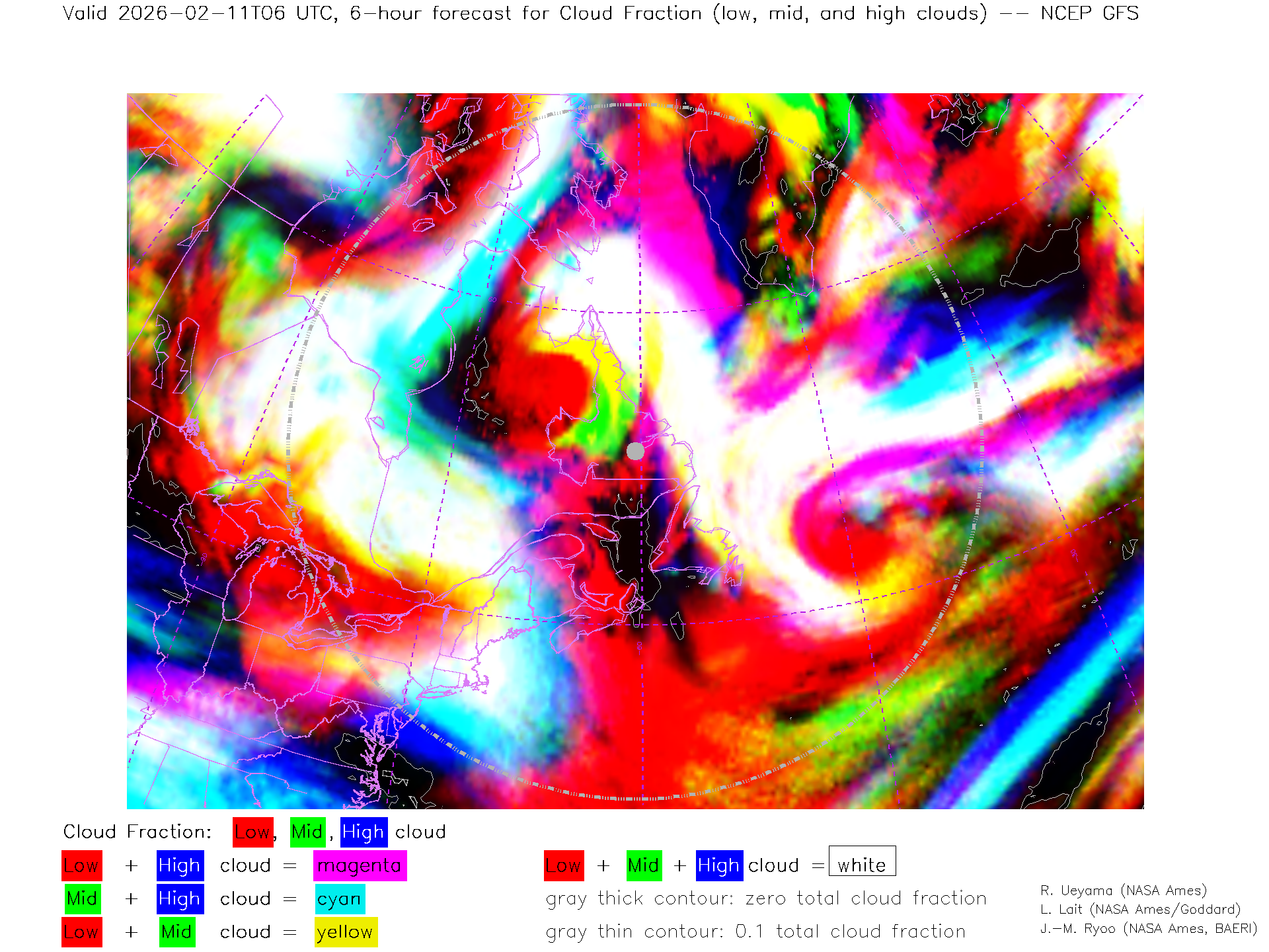 NCEP GFS Forecast Low-, Mid- and High-level Cloud Fraction