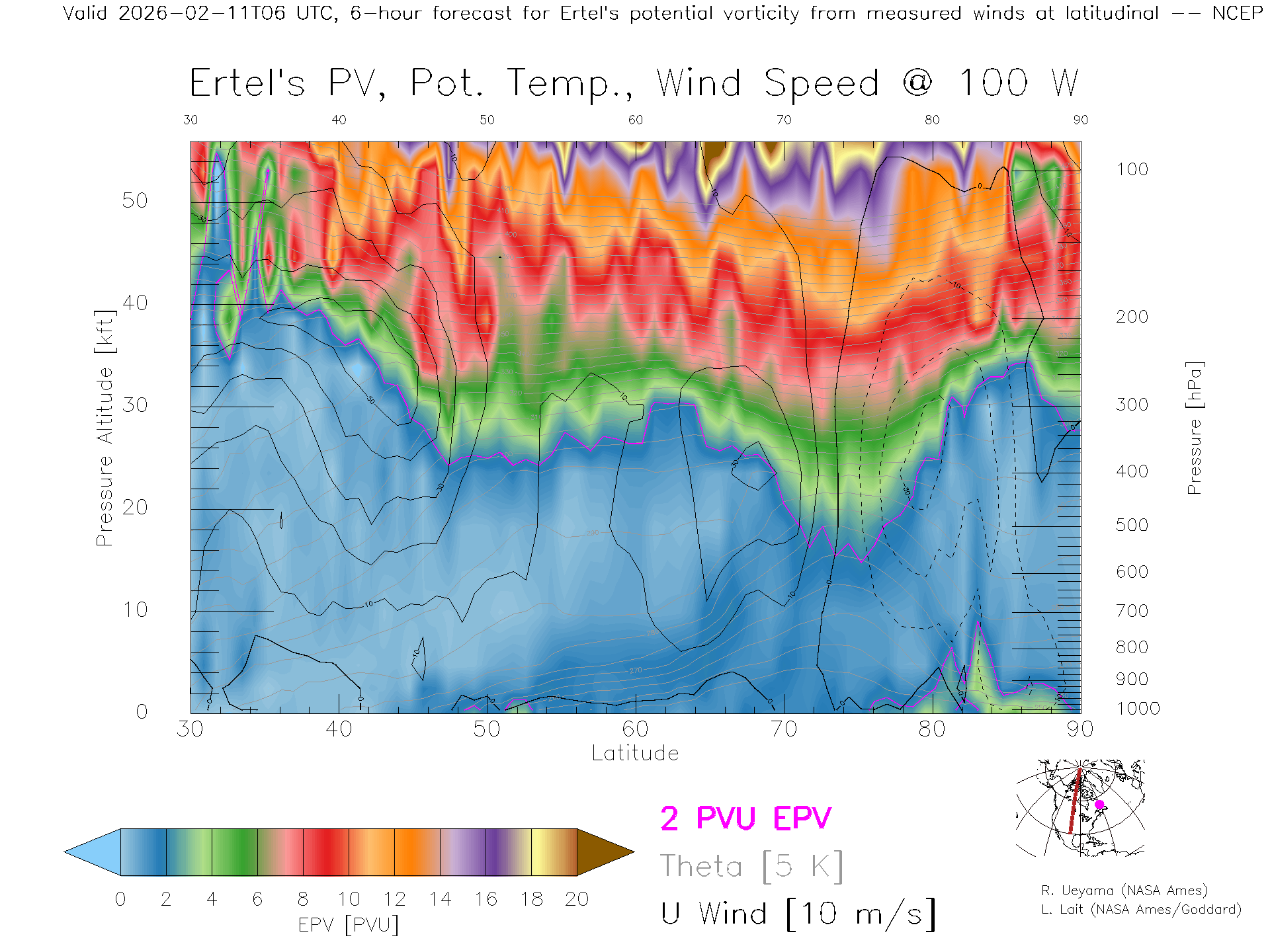 NCEP GFS Forecast PV X-Section (100 W)
