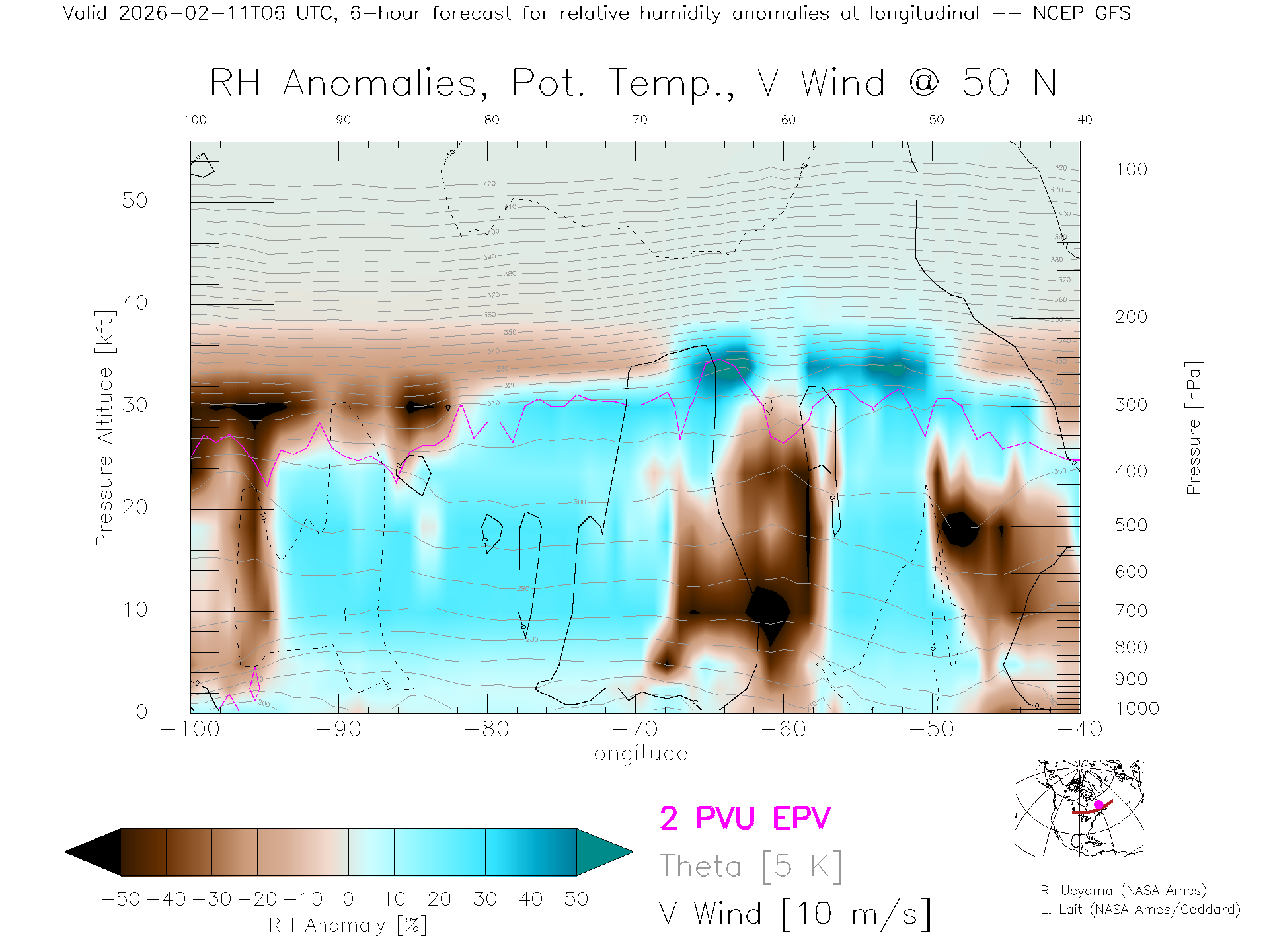 NCEP GFS Forecast Rel. Hum. X-Section (50 N)