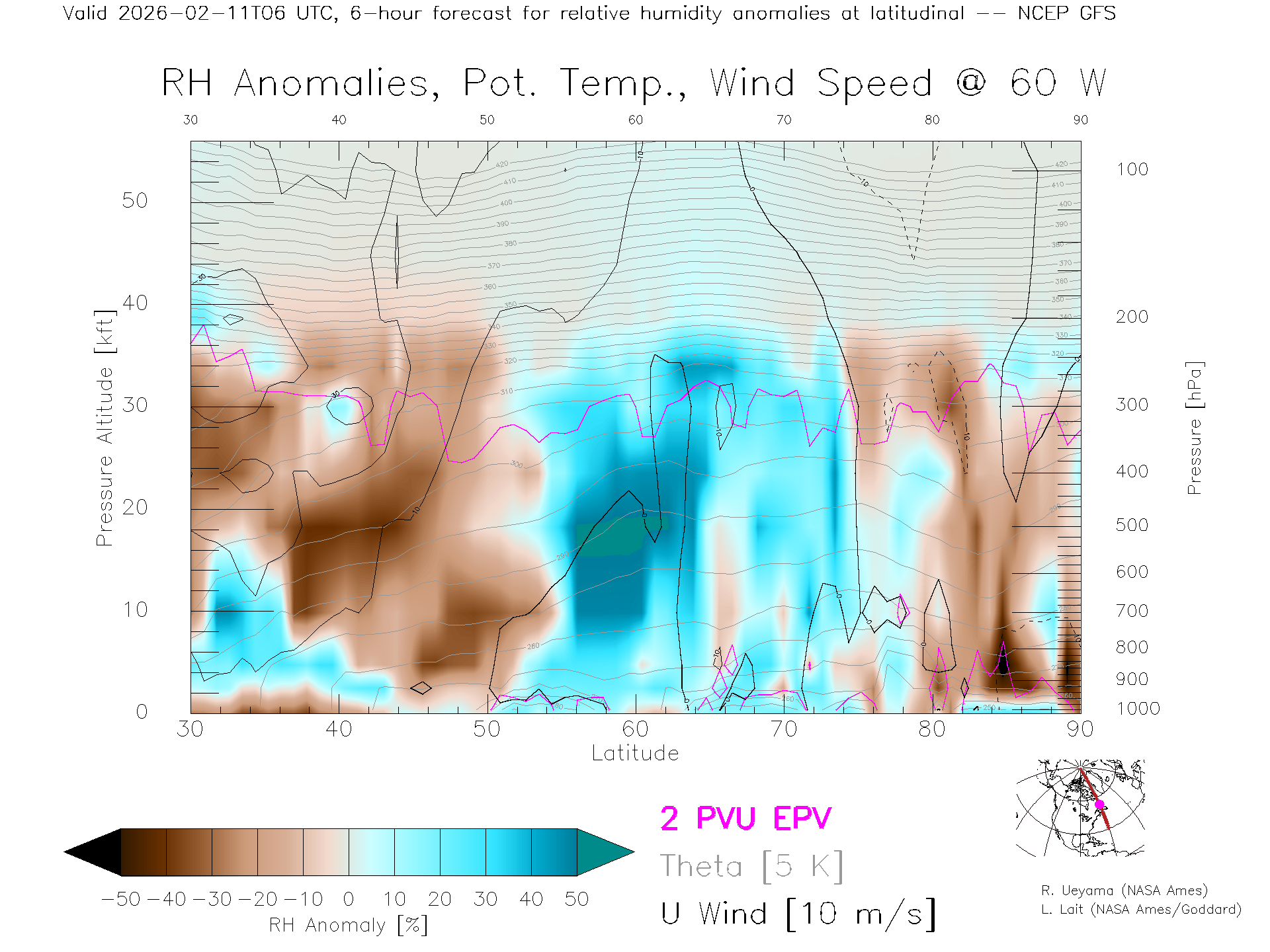 NCEP GFS Forecast Rel. Hum. X-Section (60 W)