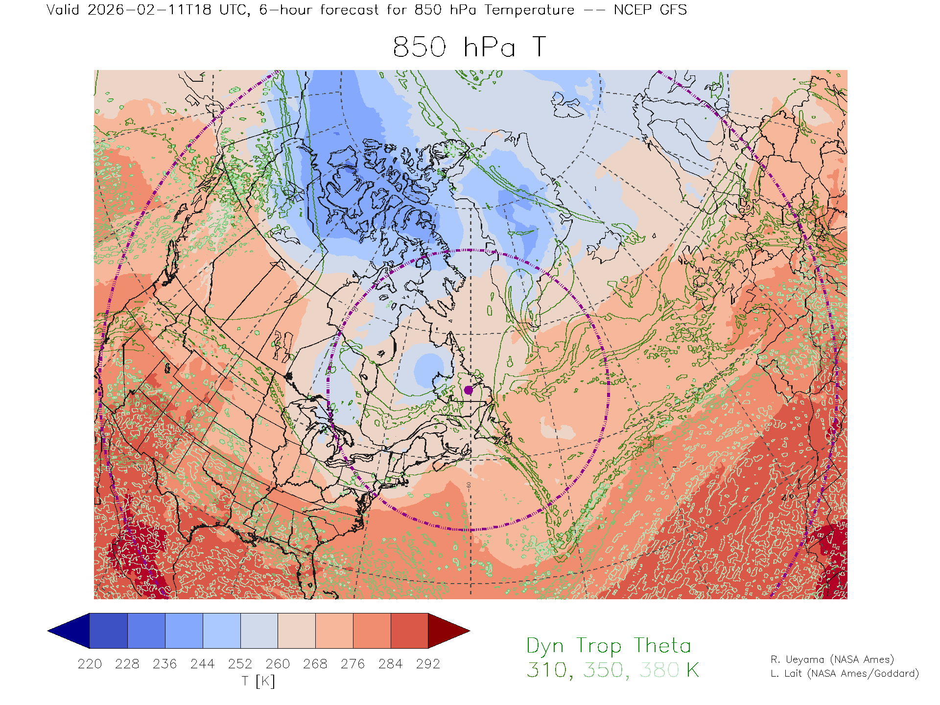 NCEP GFS Forecast 850 hPa Temp.