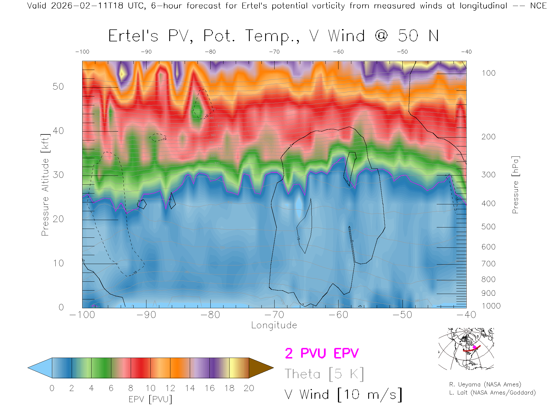 NCEP GFS Forecast PV X-Section (50 N)