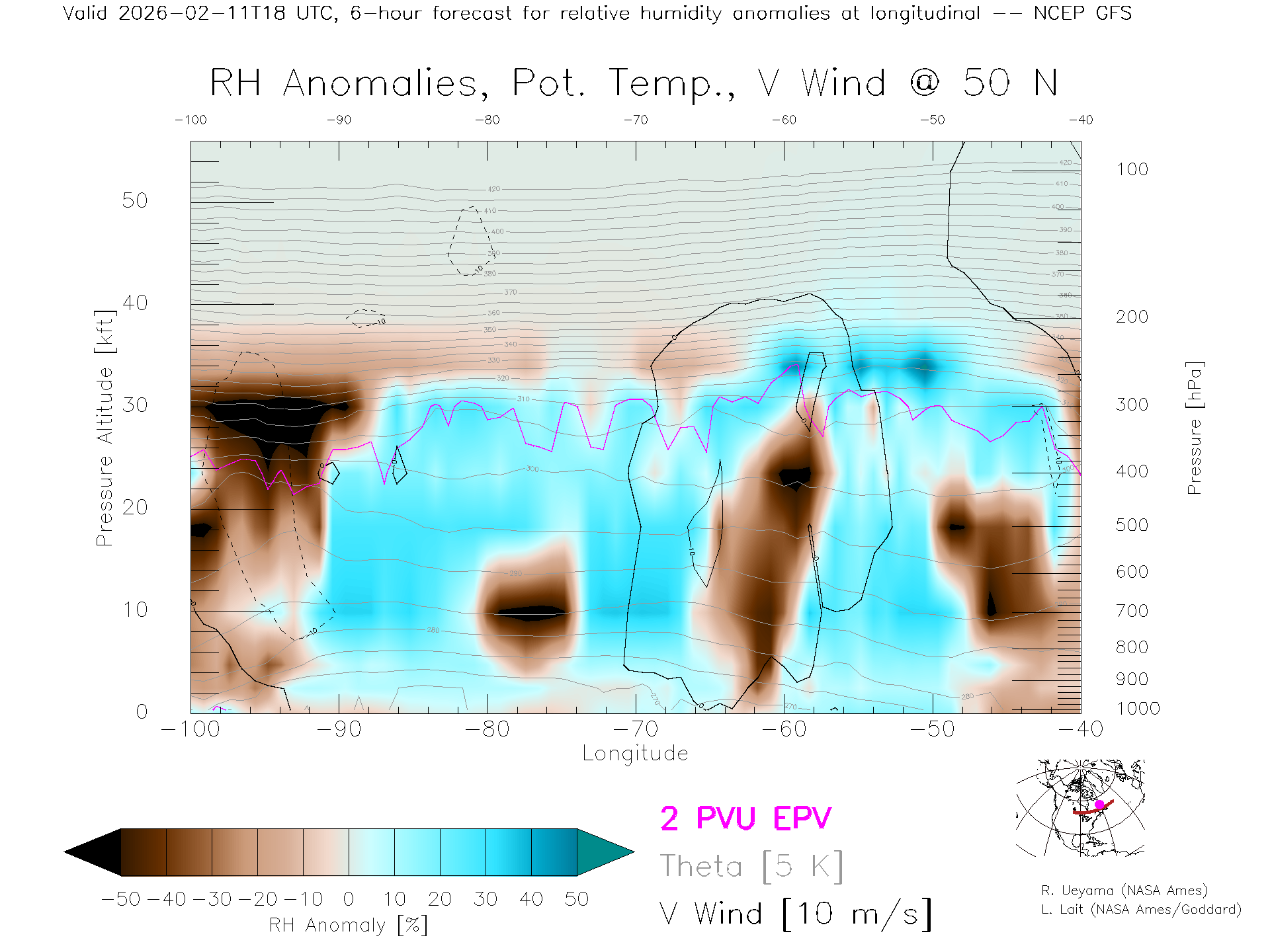 NCEP GFS Forecast Rel. Hum. X-Section (50 N)
