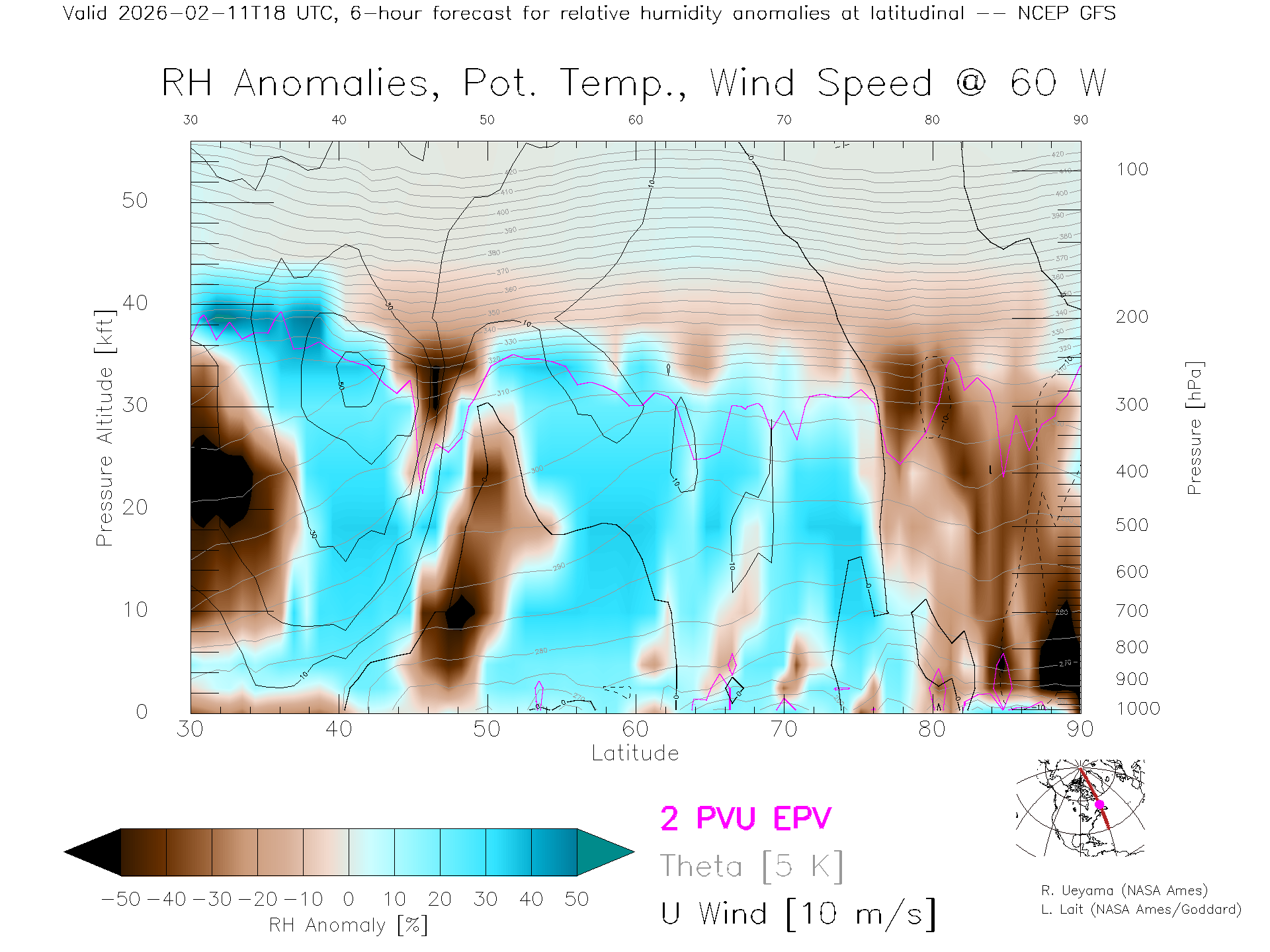 NCEP GFS Forecast Rel. Hum. X-Section (60 W)