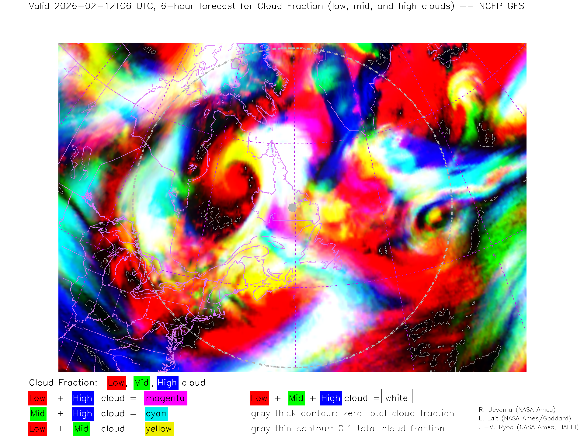 NCEP GFS Forecast Low-, Mid- and High-level Cloud Fraction