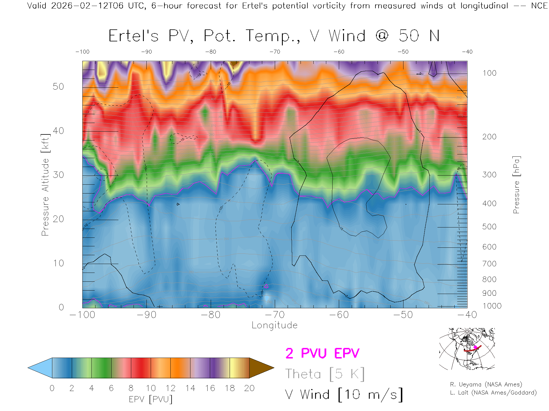 NCEP GFS Forecast PV X-Section (50 N)