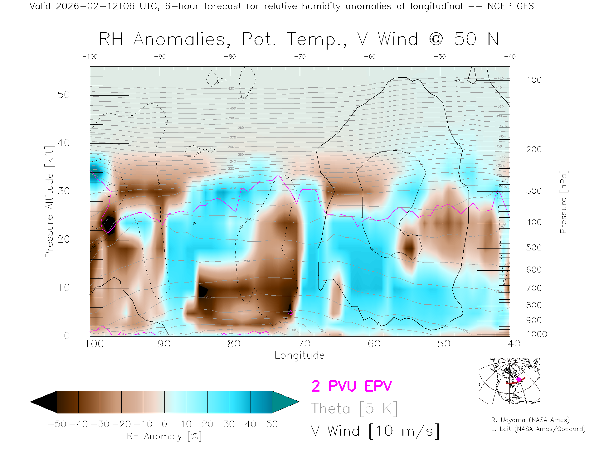 NCEP GFS Forecast Rel. Hum. X-Section (50 N)